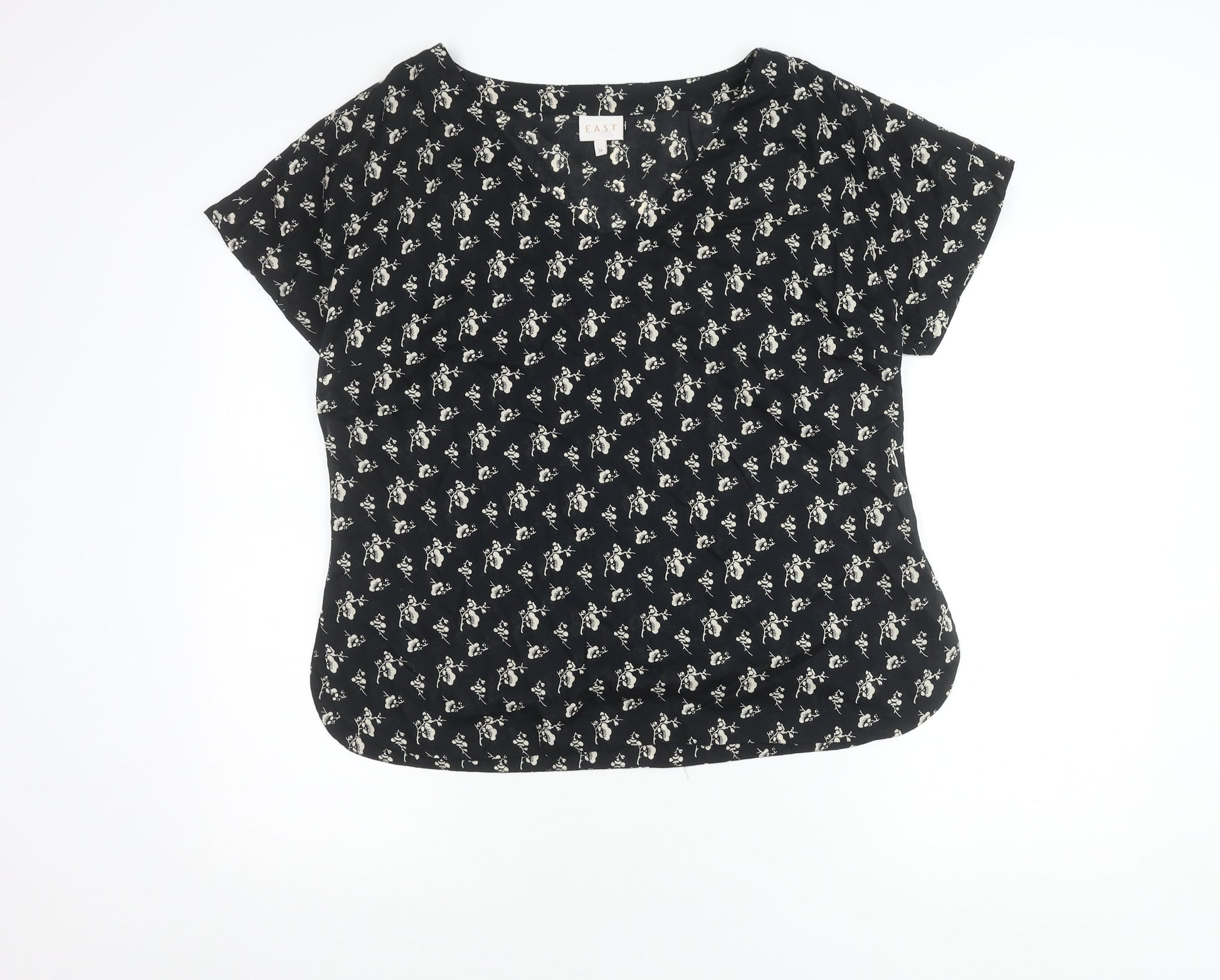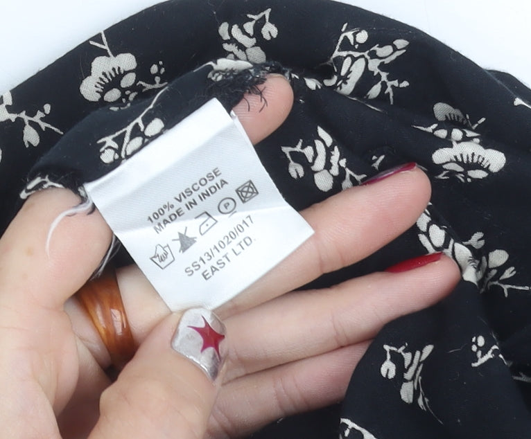 East Women’s Black Floral Viscose Blouse M Short Sleeve Summer Top