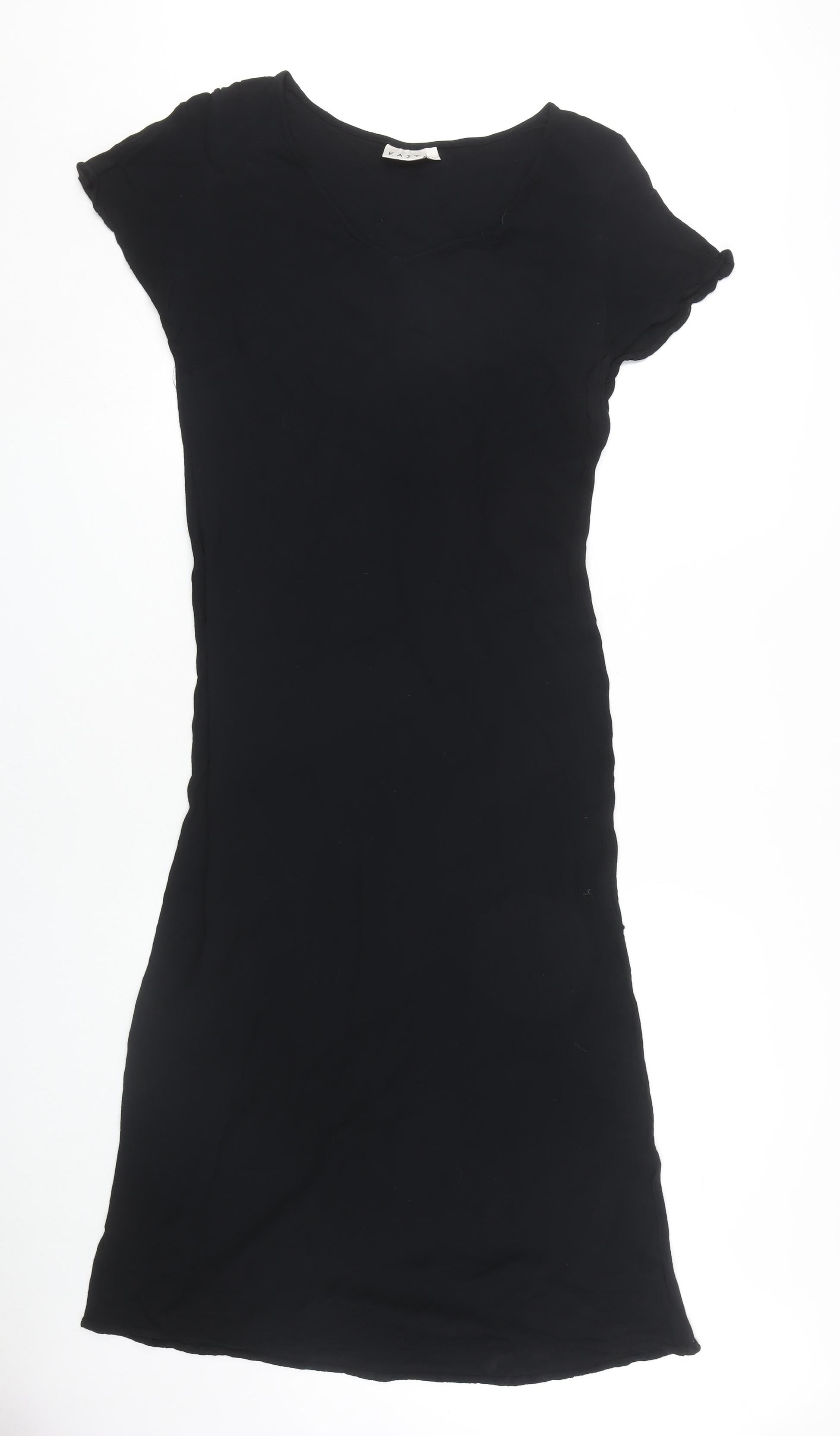 EAST Women's Black Short Sleeve V-Neck Dress L