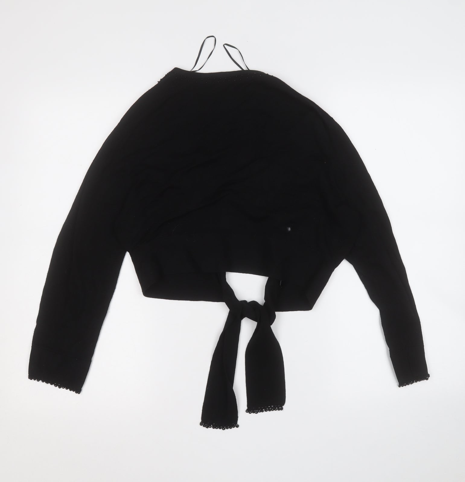 EAST Womens Black V-Neck Geometric Viscose Cardigan Jumper Size 14