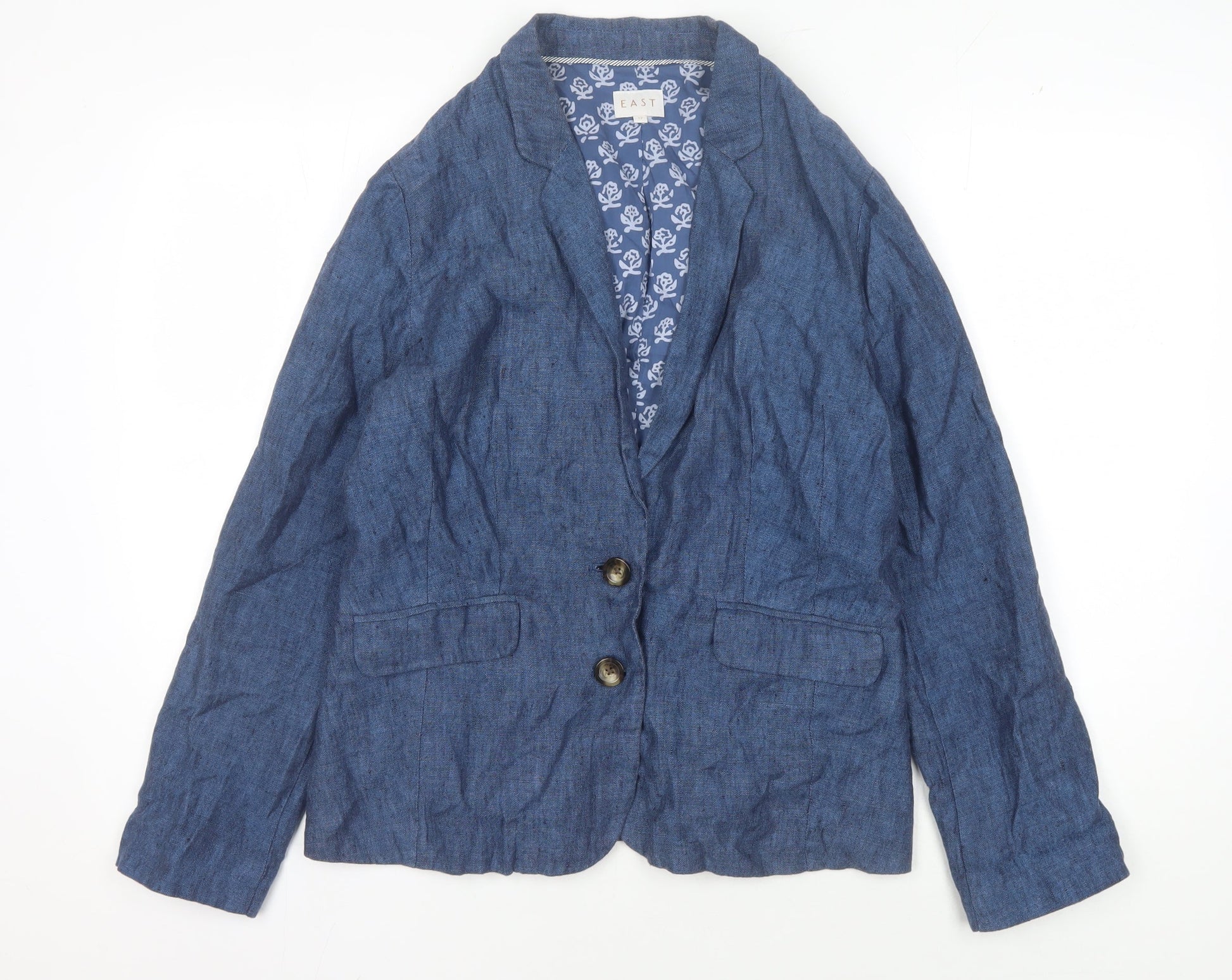 East Women's Blue Blazer - Size 12, Cotton, Casual