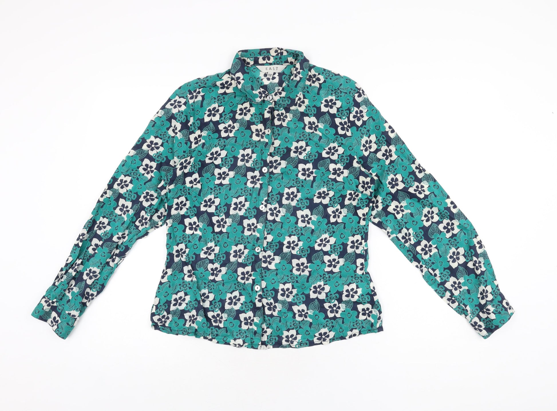 EAST Womens Green Floral Cotton Basic Button-Up Size 12 Collared