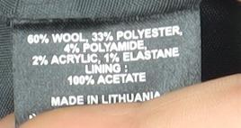 - Material Breakdown: 60% Wool 33% Polyester 4% Polyamide 2% Acrylic 1% Elastane
