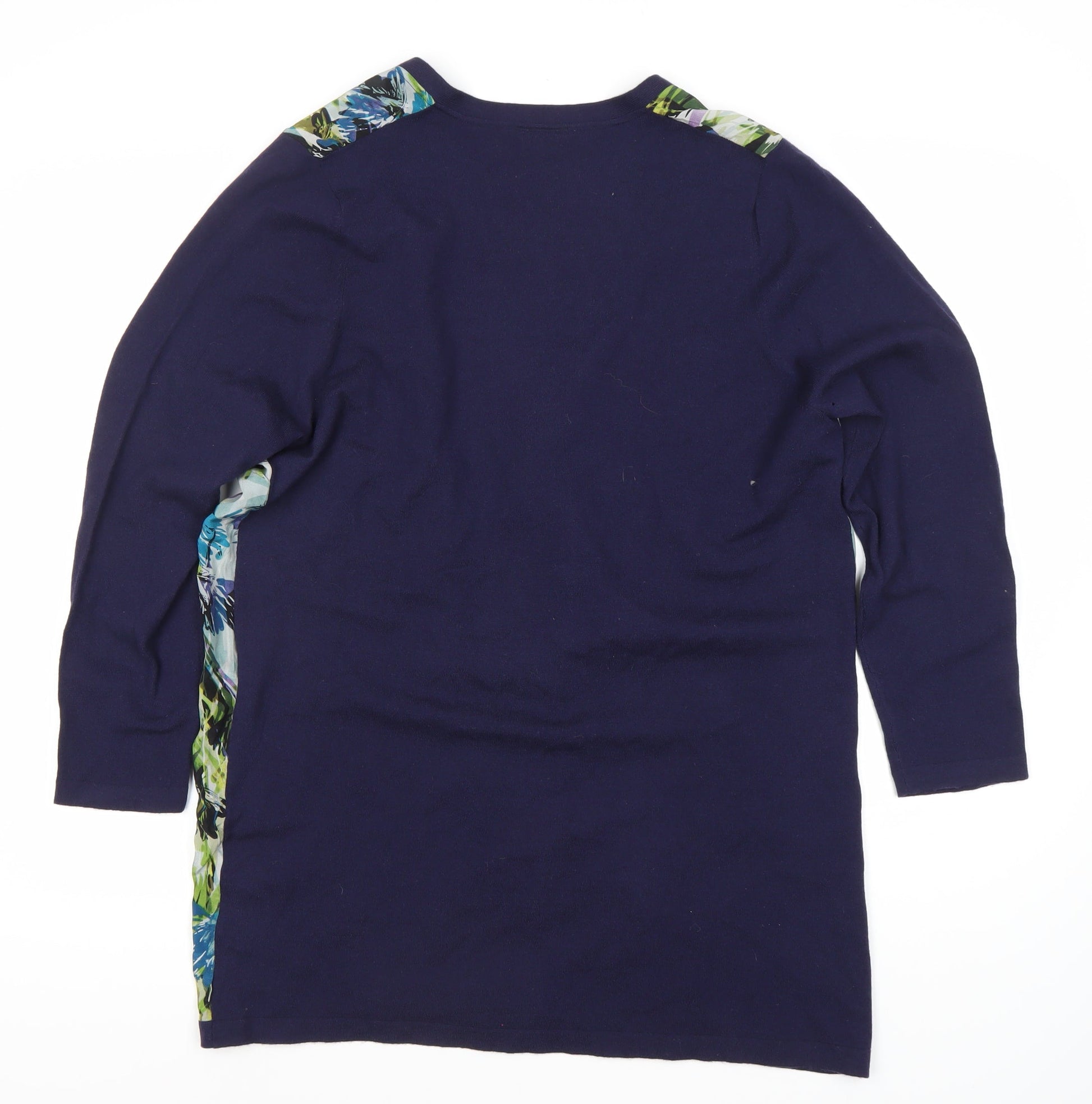 EAST Women's Multicoloured Floral Silk Wool Cardigan Size 16