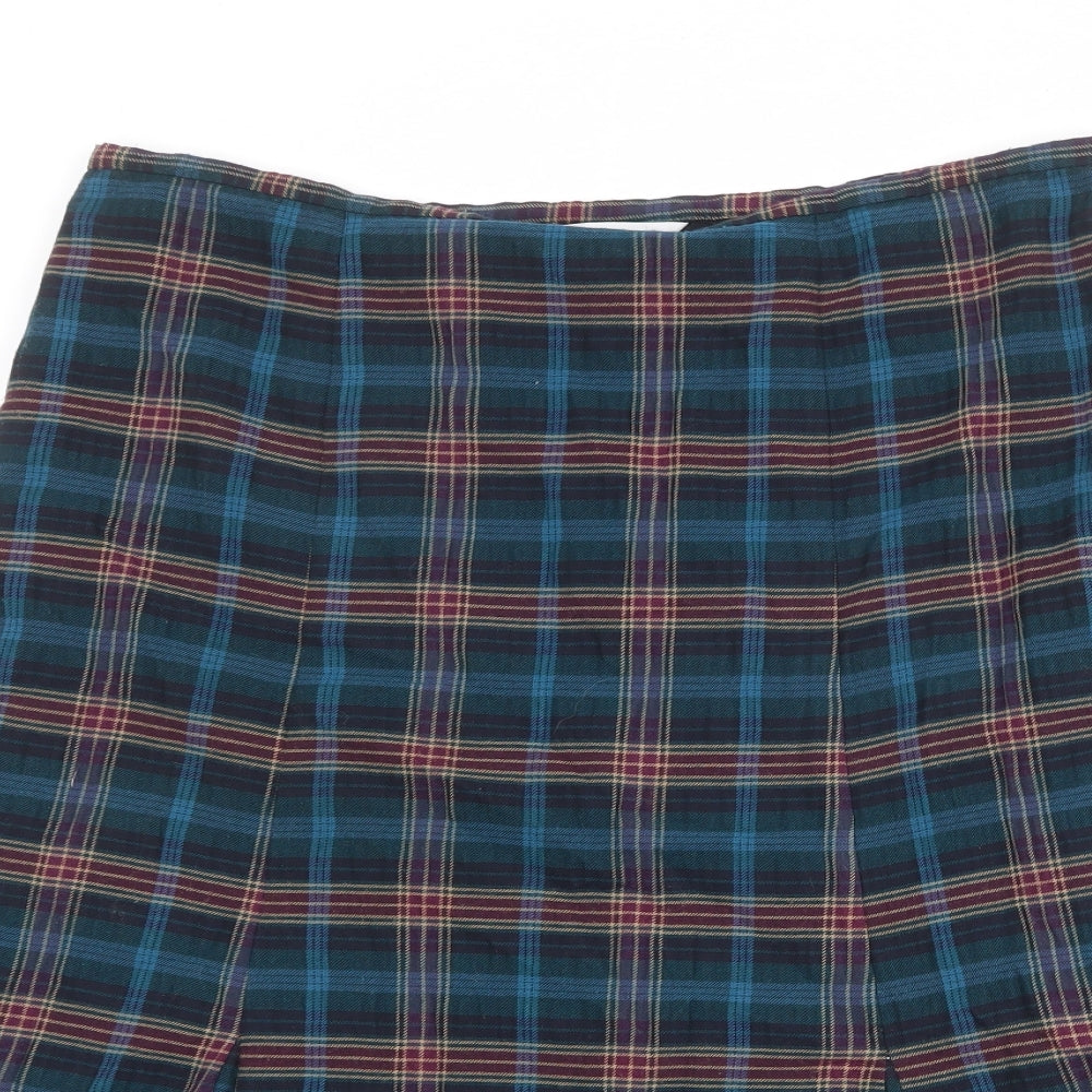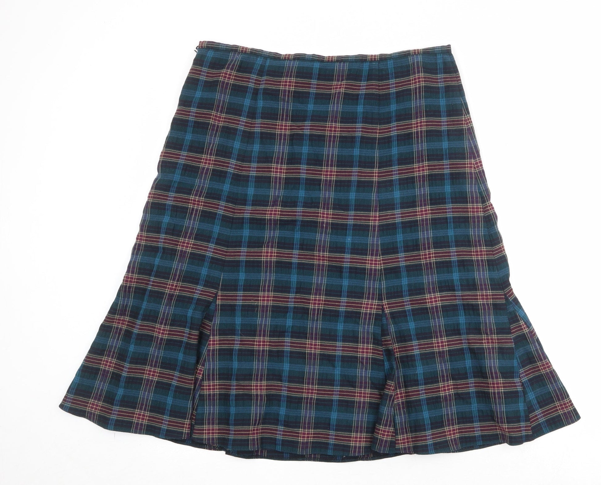 EAST Womens Multicoloured Plaid Polyester Swing Skirt Size 34 in Zip