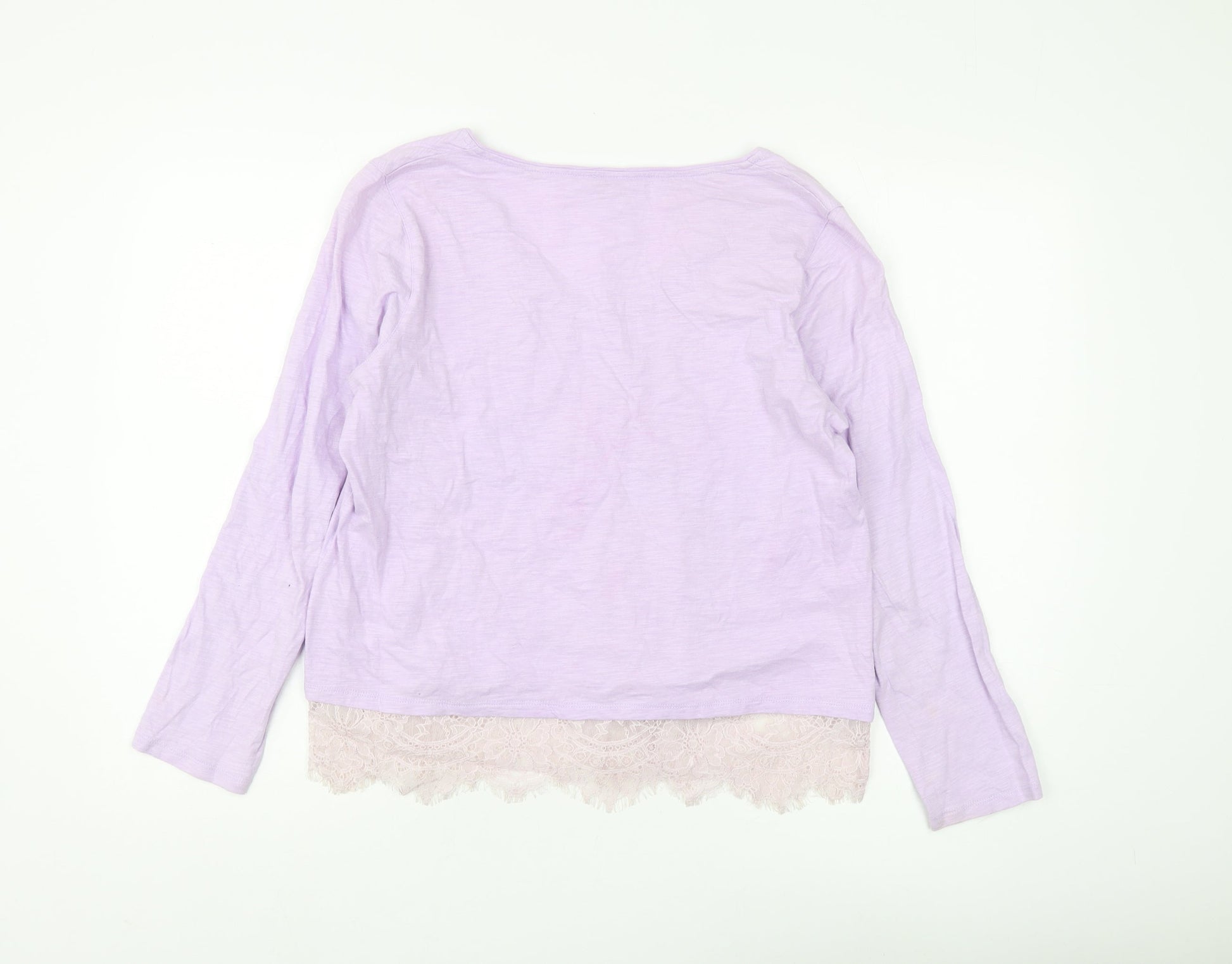 East Women's Purple V-Neck Lace Hem Blouse Size M