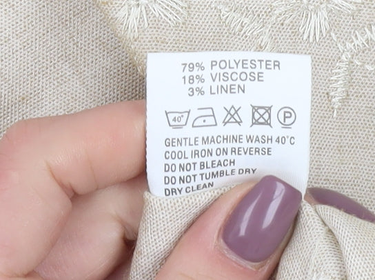 - Material Breakdown: 79% Polyester 18% Viscose 3% Linen