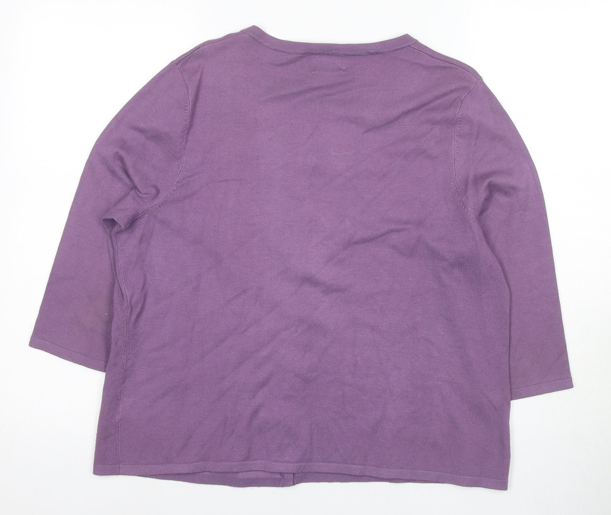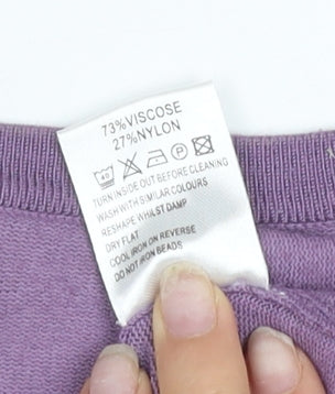 Eastex Women’s Purple Cardigan Size 14, Beaded Accents, 3/4 Sleeve