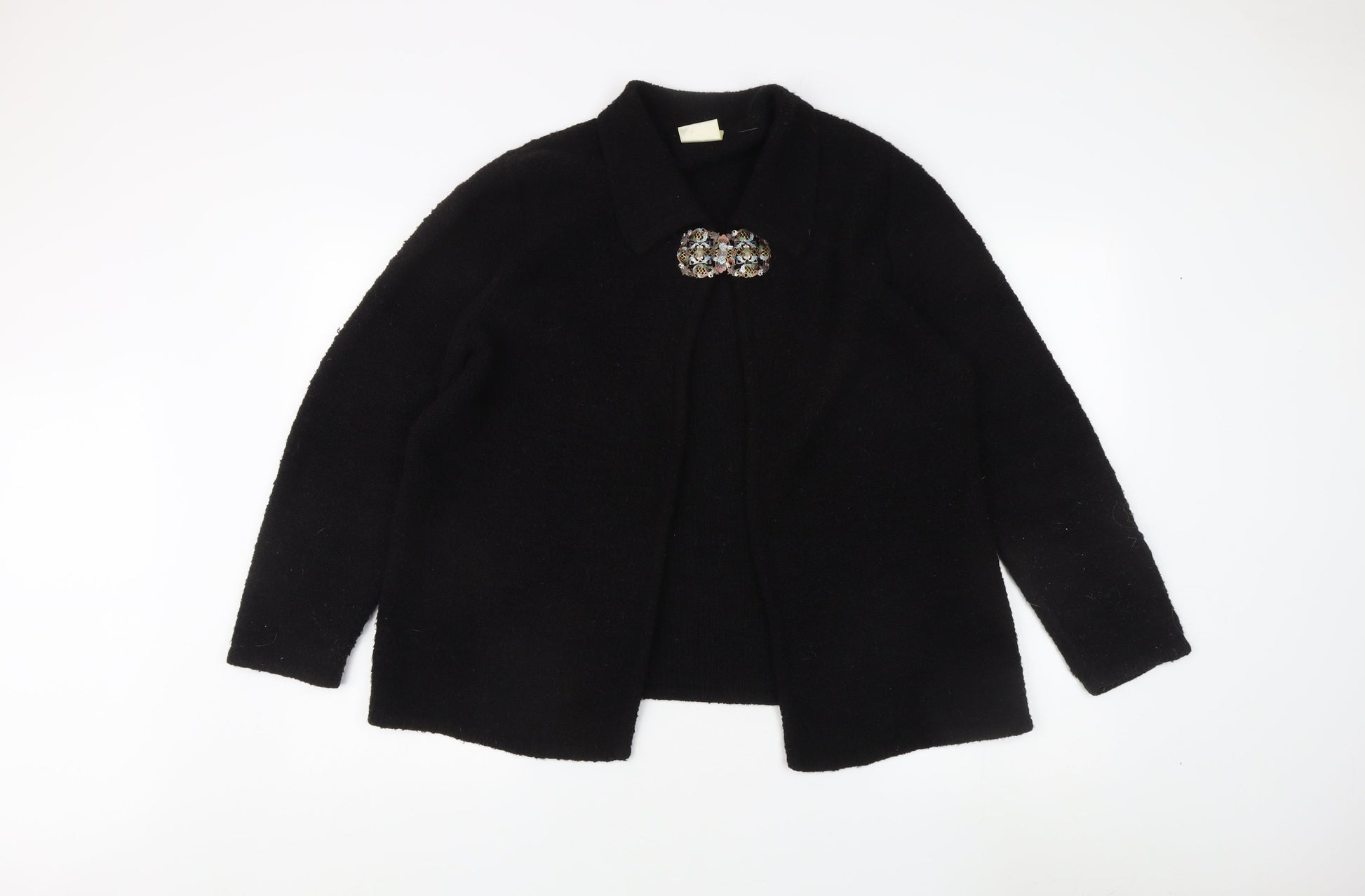 Eastex Women's Black Cardigan, Collared Wool Blend L