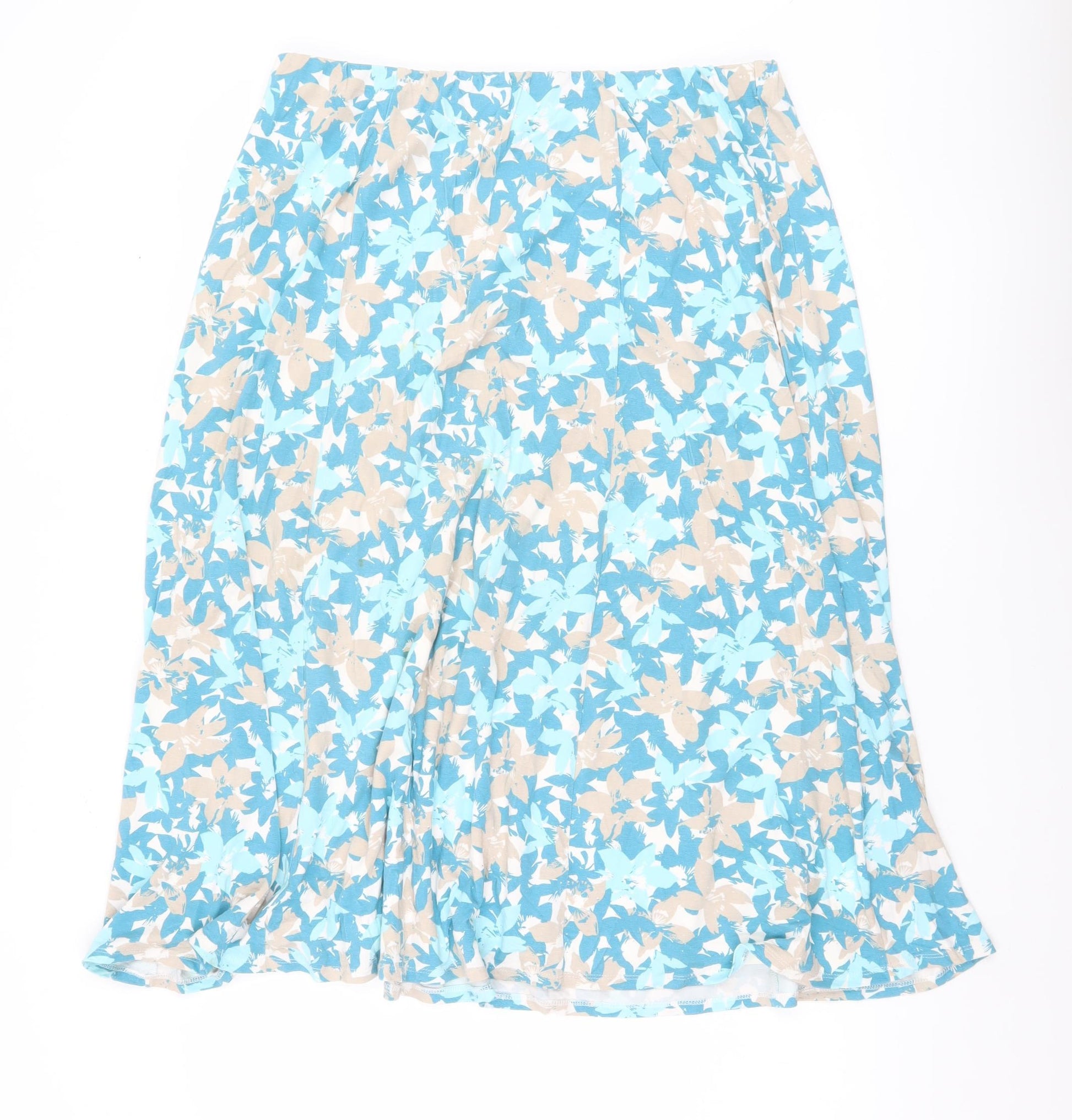 Eastex Womens Blue Beige Floral A-Line Midi Skirt Size 16