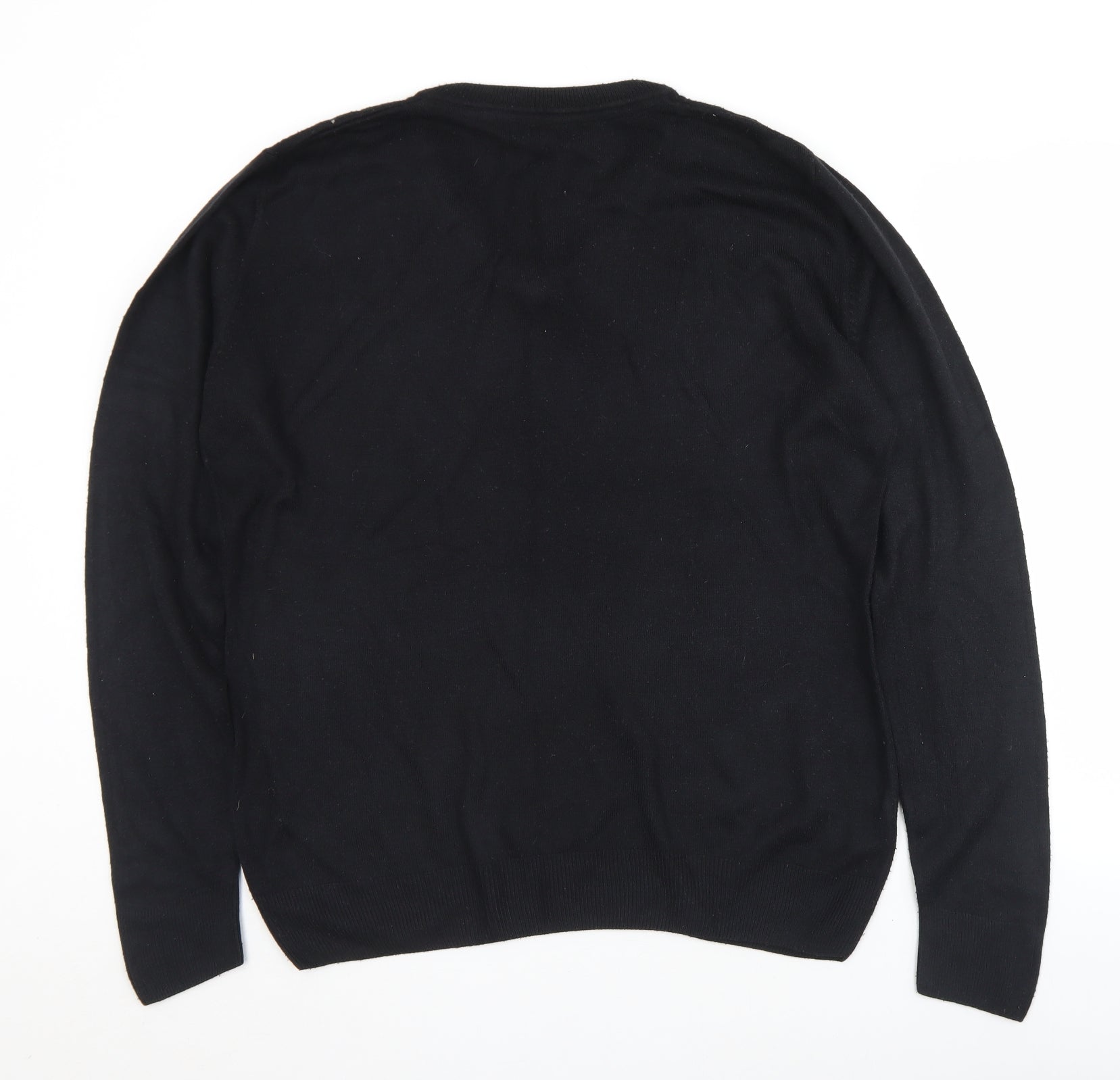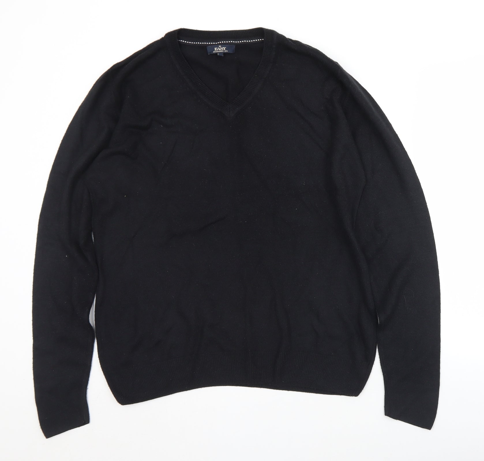 Easy Mens Black V-Neck Acrylic Pullover Jumper Size M