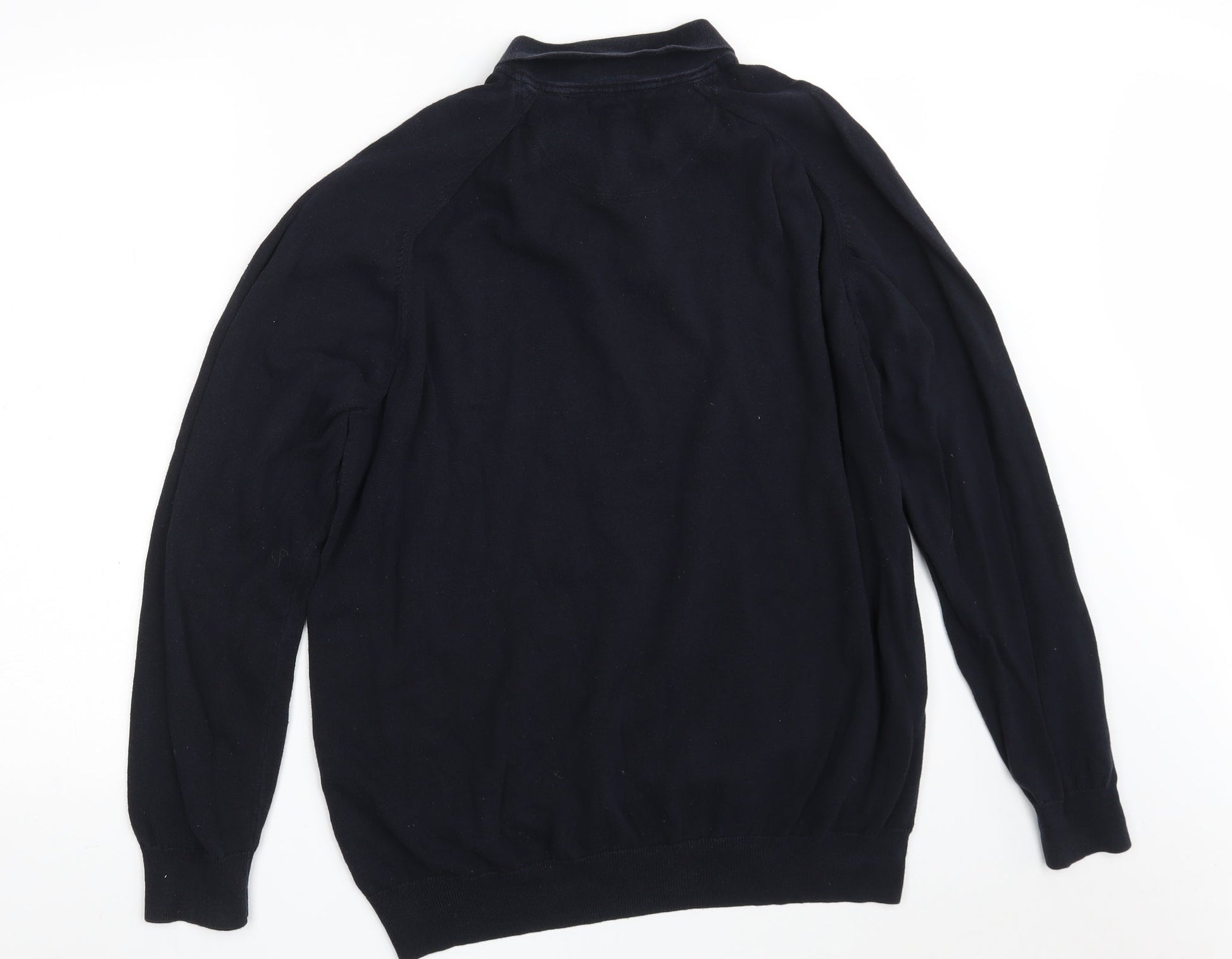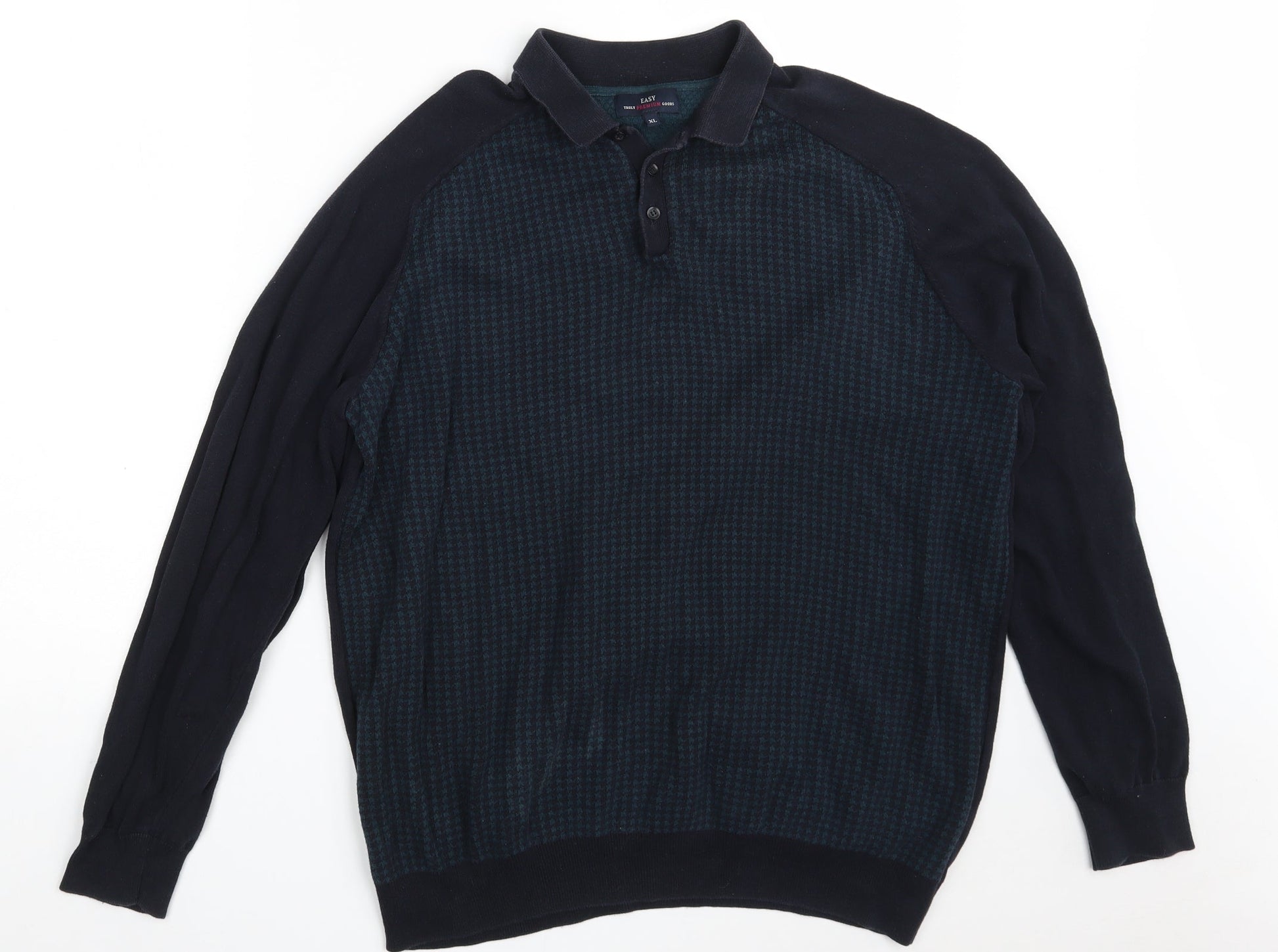 Easy Mens Blue Collared Houndstooth Cotton Pullover Jumper Size XL