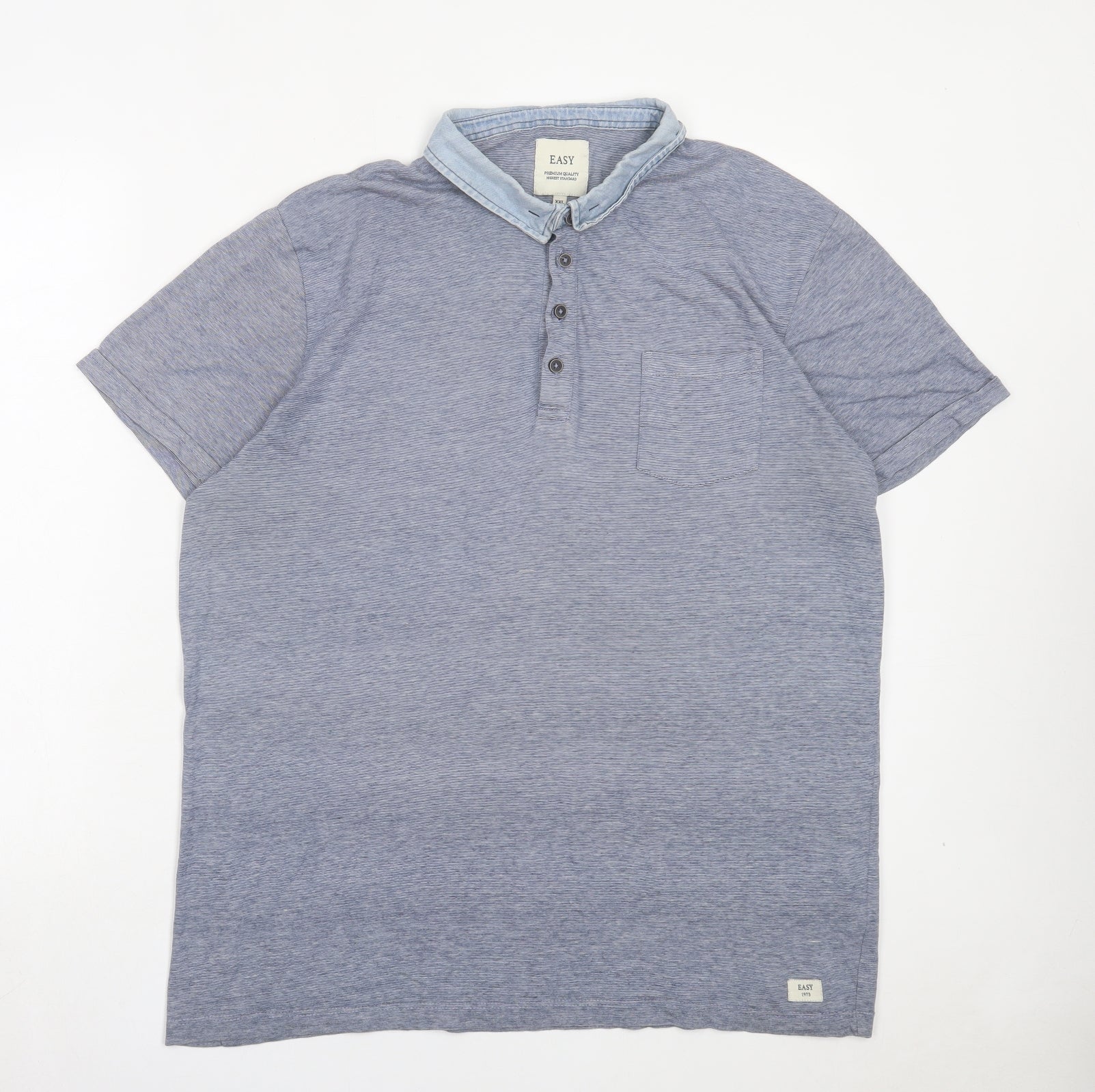 Easy Mens Blue Cotton Polo Size 2XL Collared Button - Pocket Detail