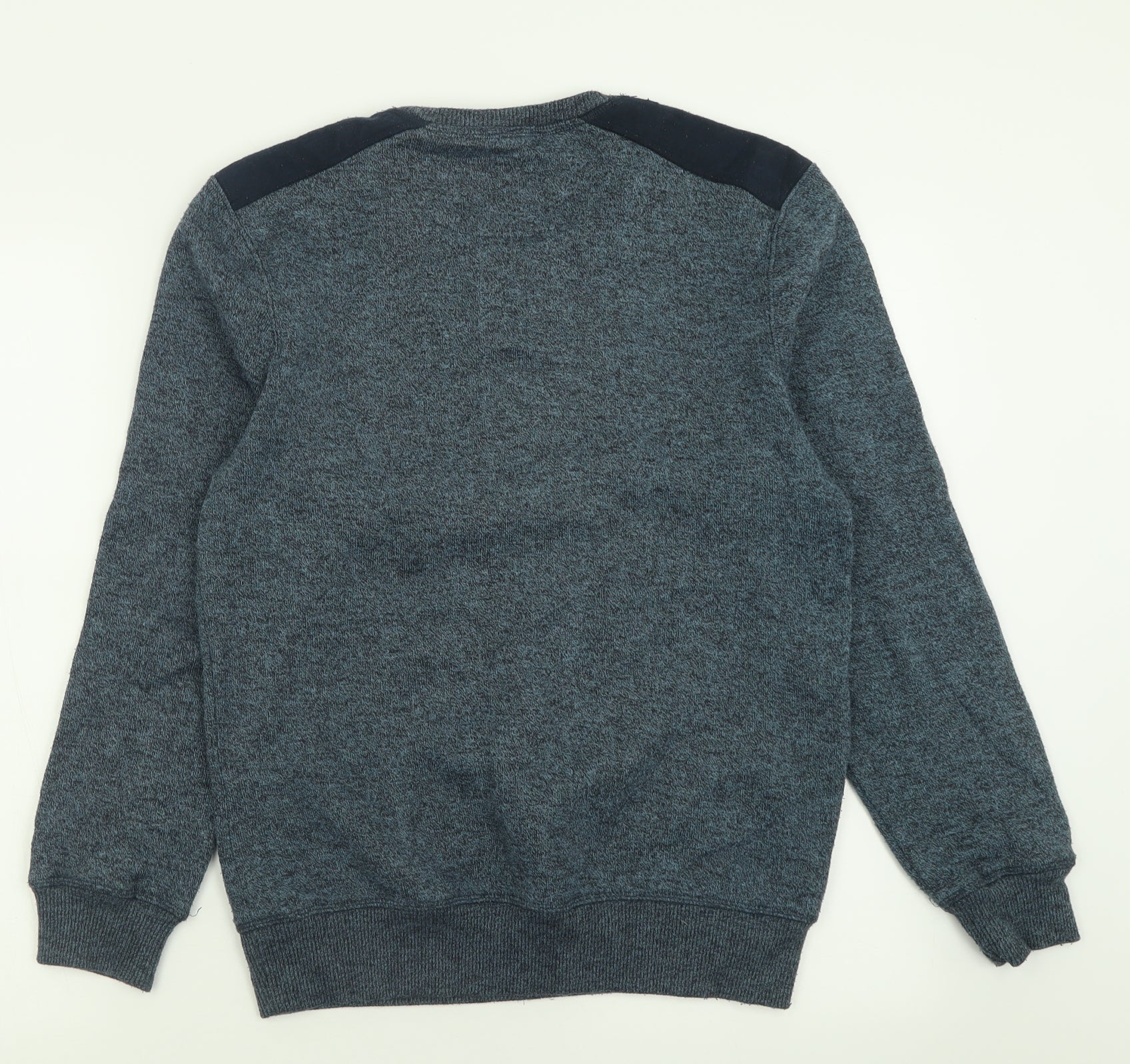 Easy Mens Blue Crew Neck Polyester Pullover Jumper Size S