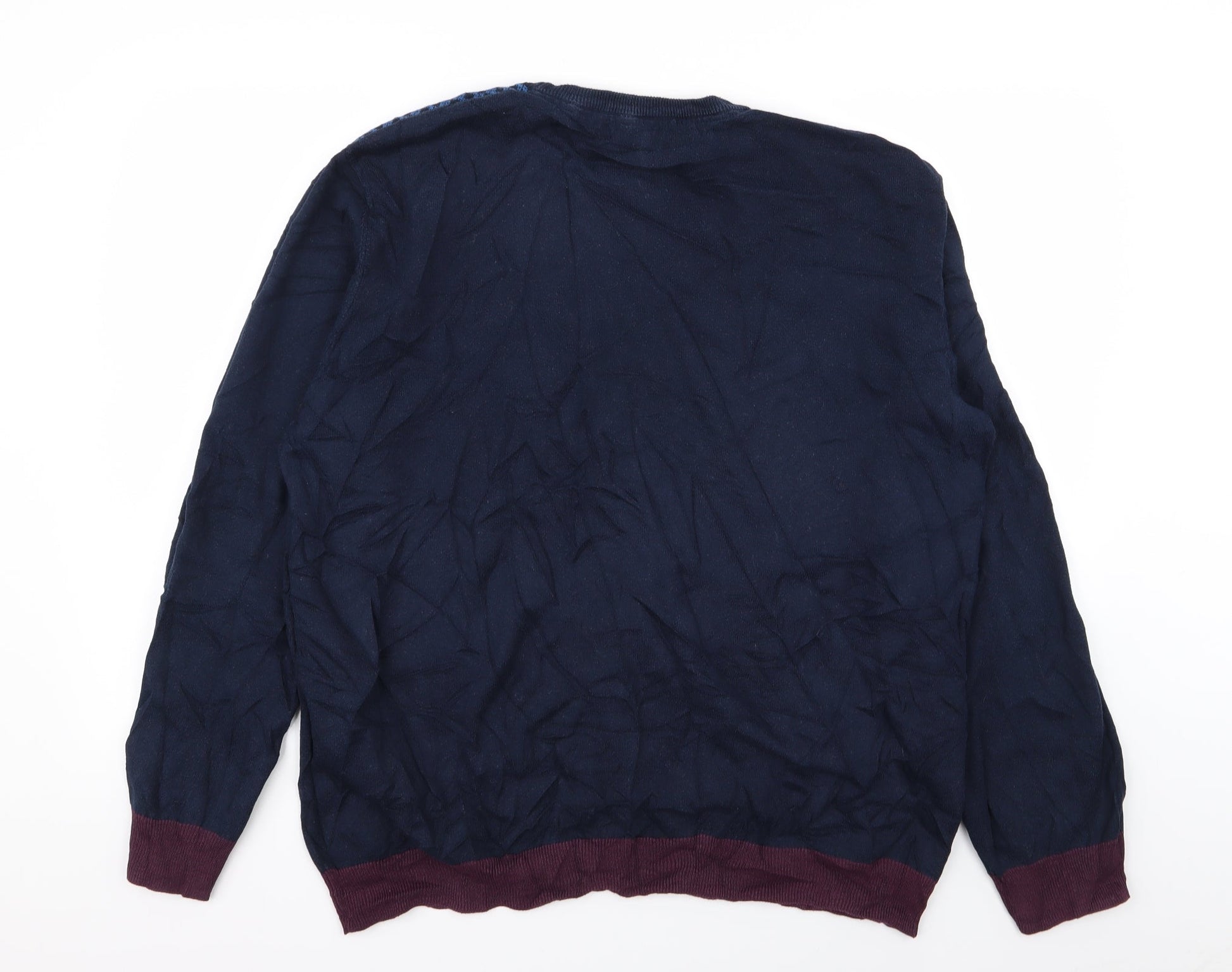 Easy Mens Blue Geometric Pullover Jumper Size XL