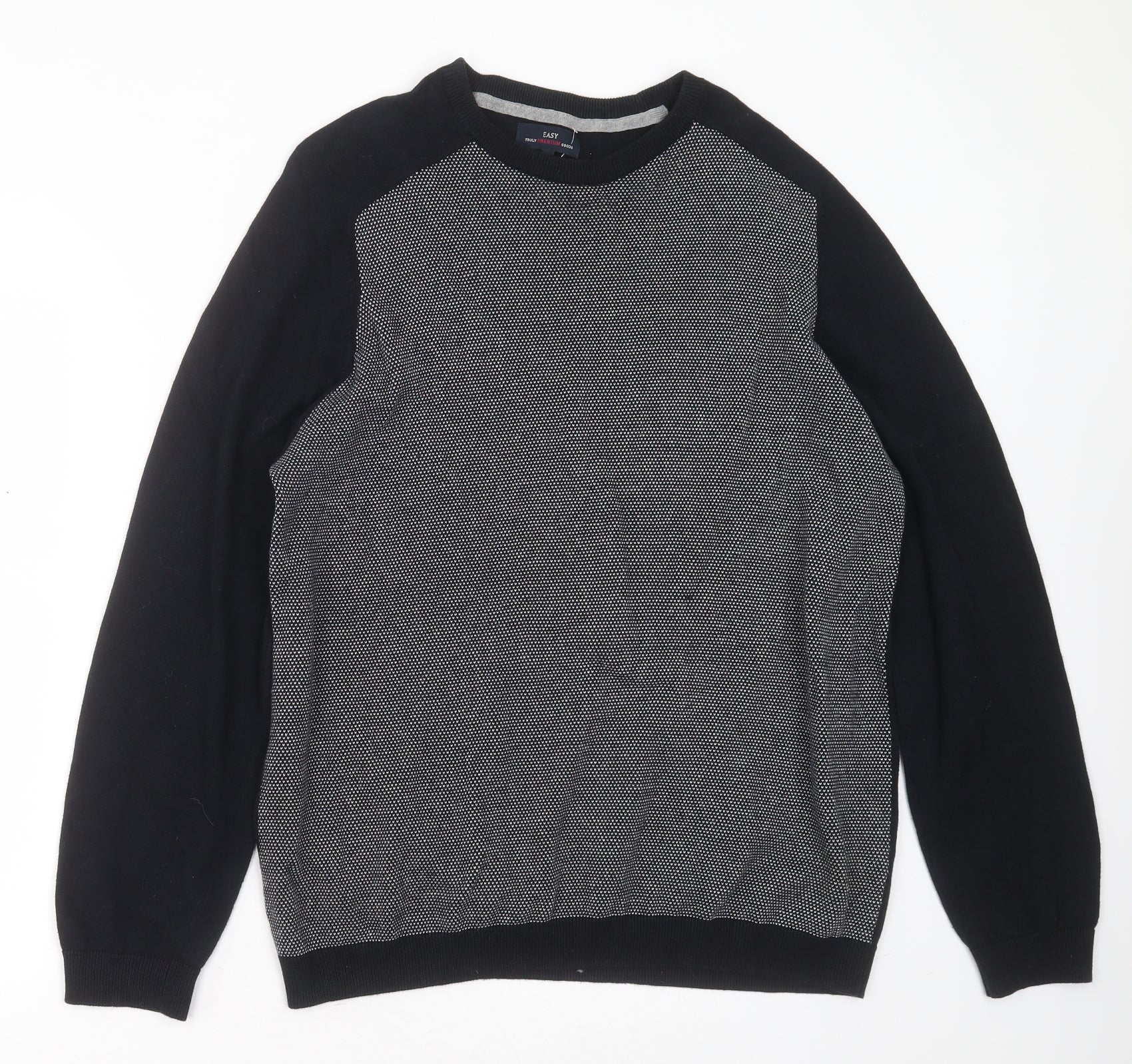 Easy Mens Blue Round Neck Geometric Cotton Pullover Jumper Size L