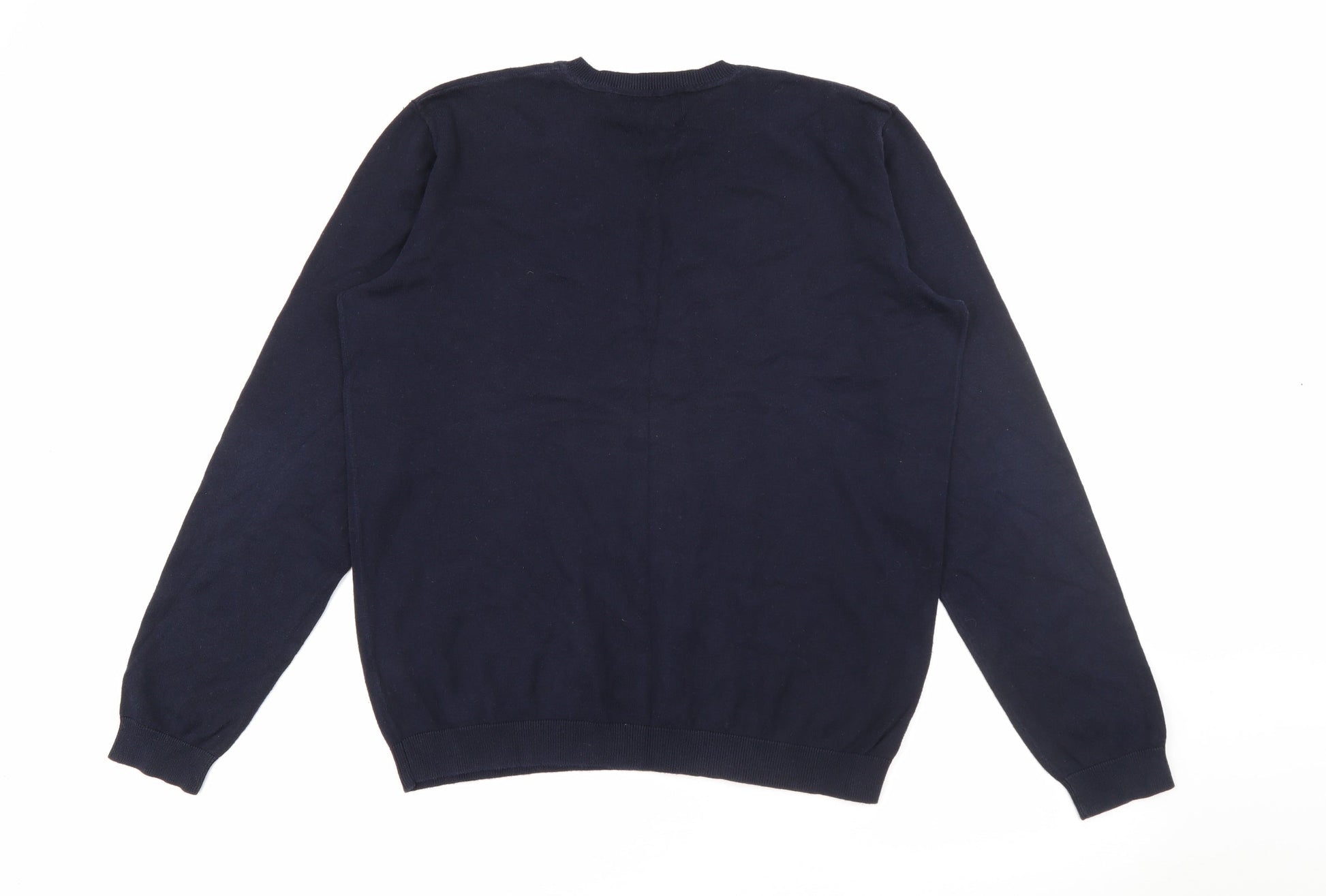 Easy Mens Blue V-Neck Cotton Pullover Jumper Size M
