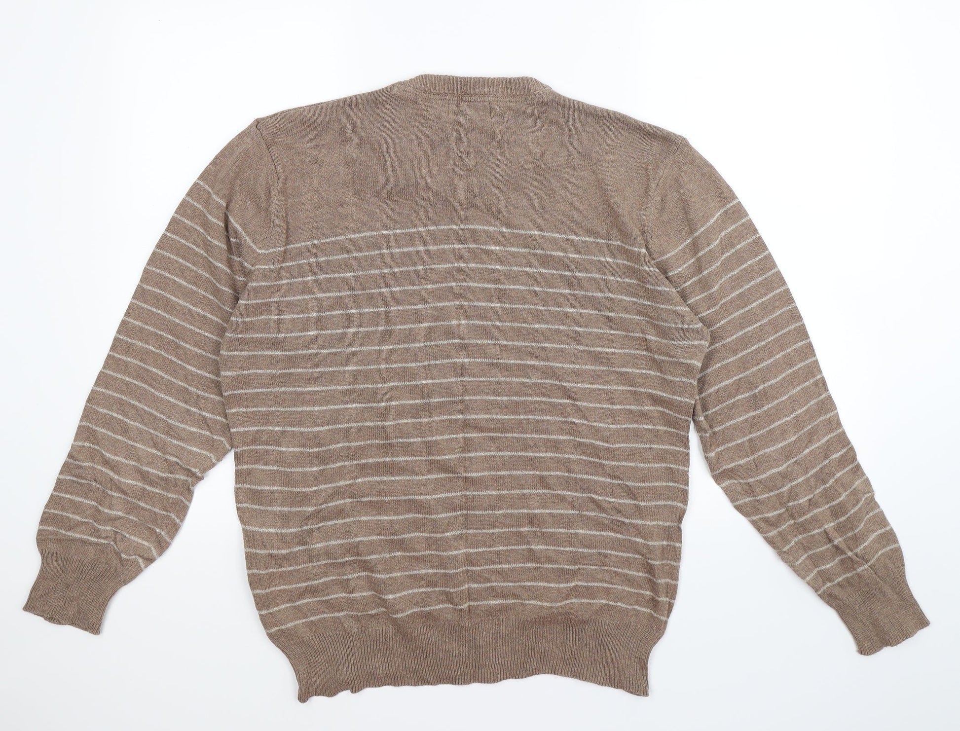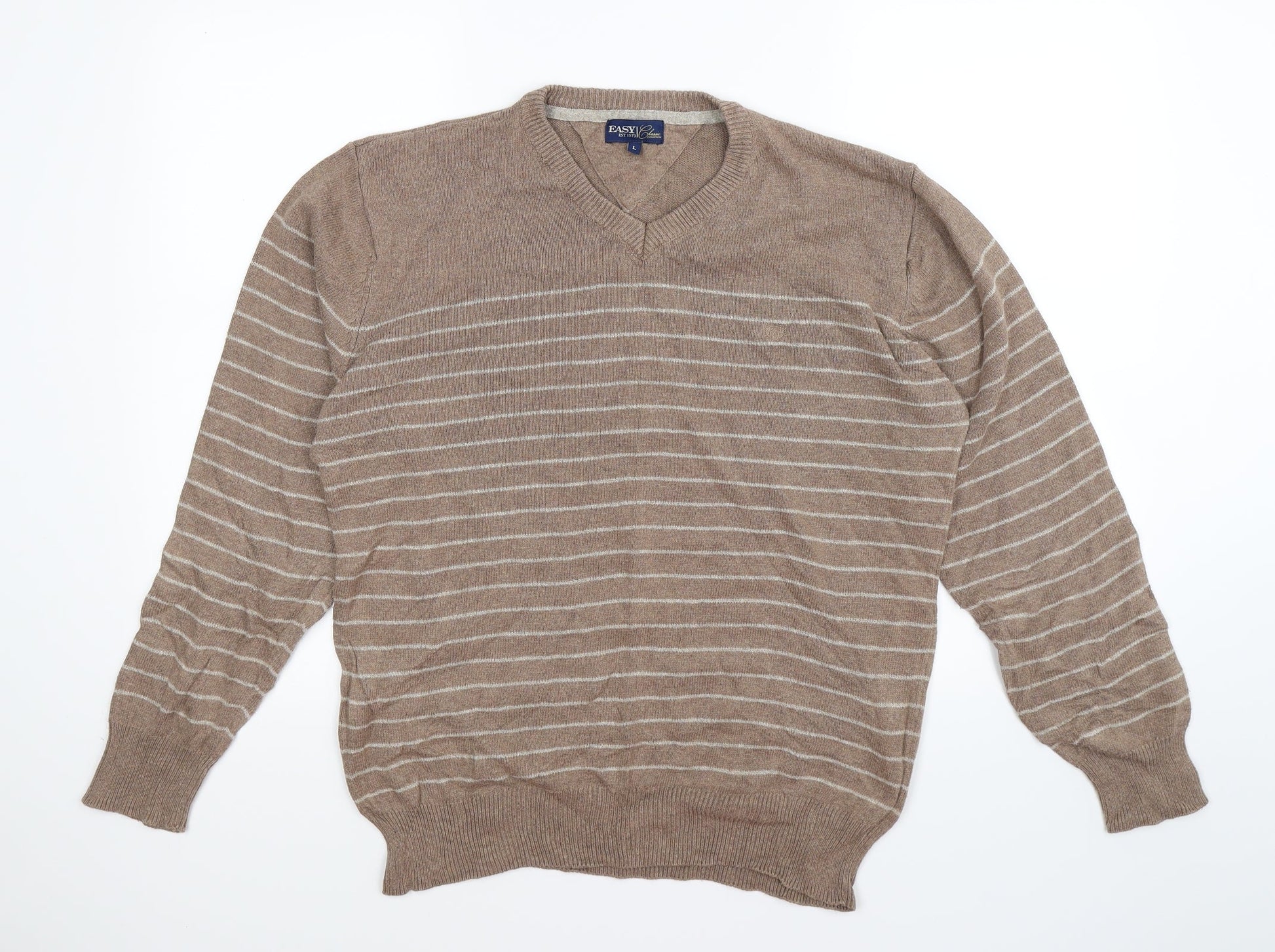 Easy Mens Brown Striped Knit Pullover Jumper Size L