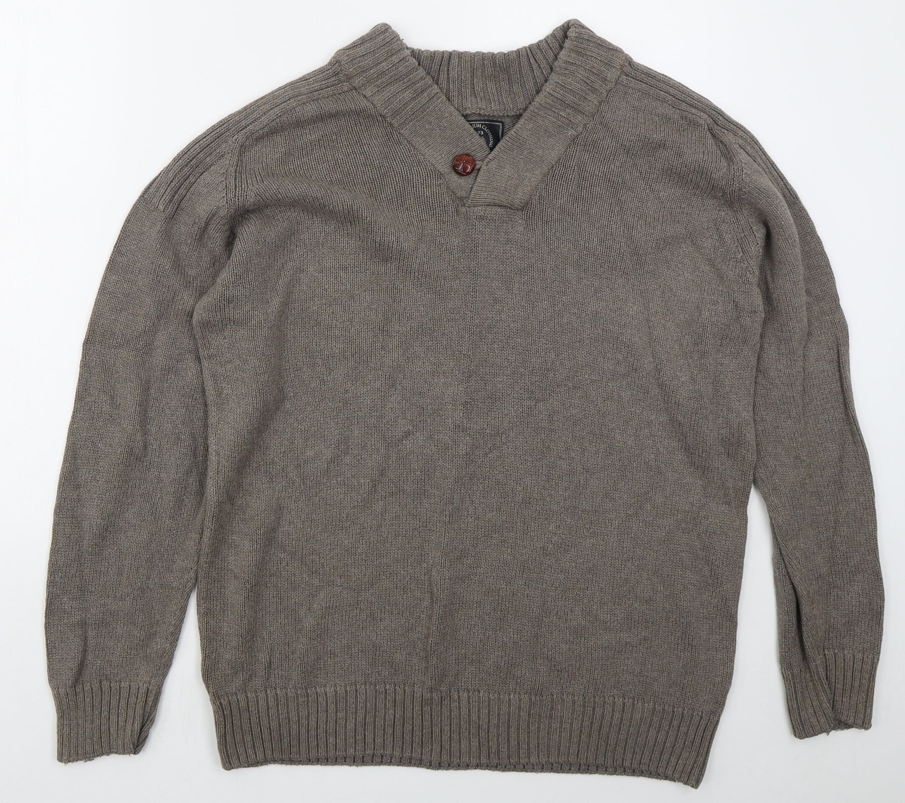 Easy Mens Brown V-Neck Cotton Pullover Jumper Size L