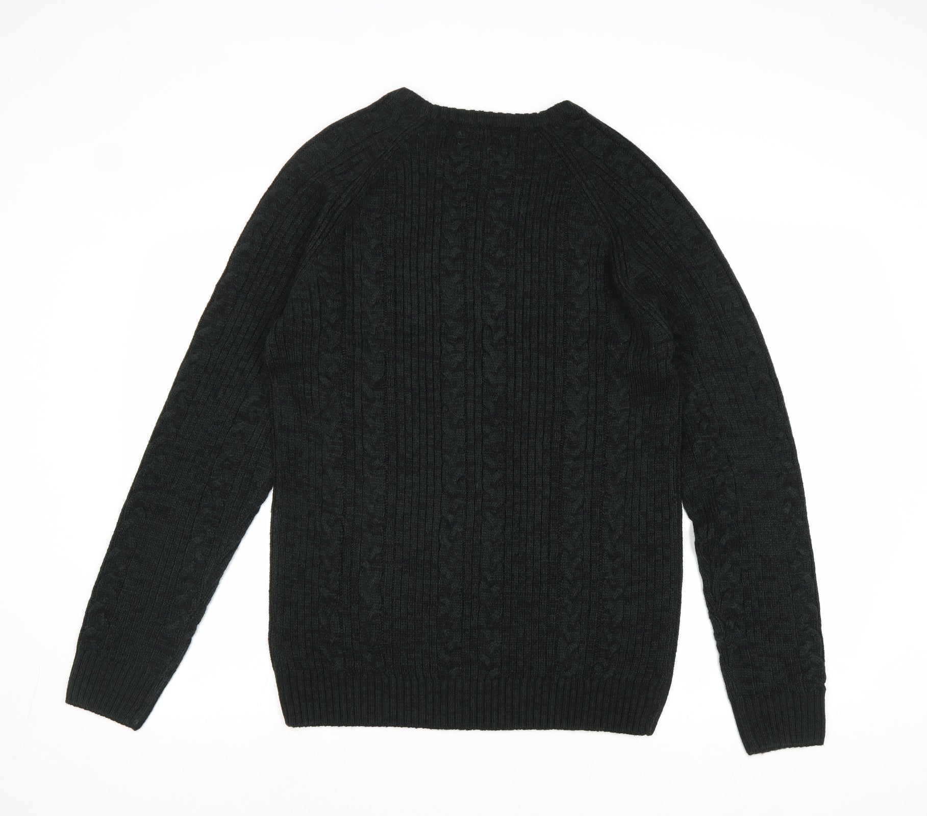 Easy Mens Green Round Neck Acrylic Pullover Jumper Size M Long Sleeve