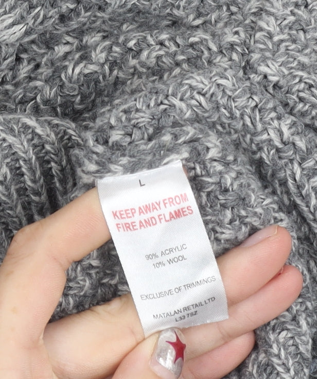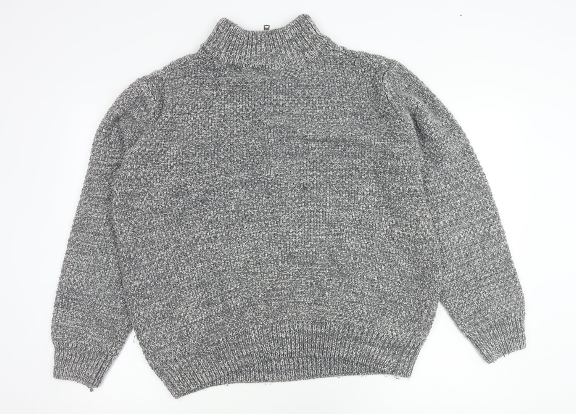 Easy Mens Grey Cable-Knit Mock Neck 1/4 Zip Pullover Jumper L