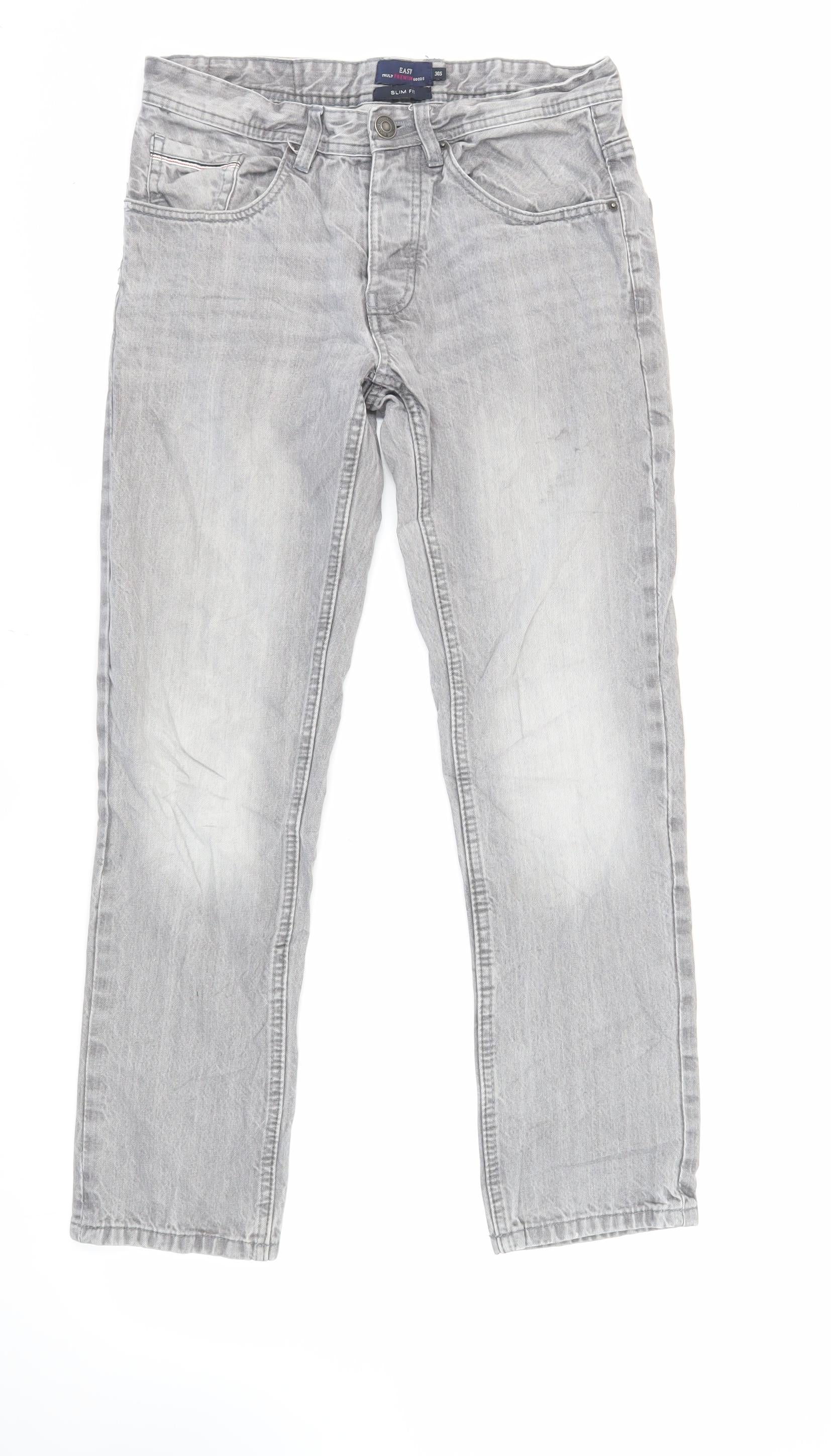 Easy Mens Grey Cotton Straight Jeans Size 30 in L29 in Slim Button