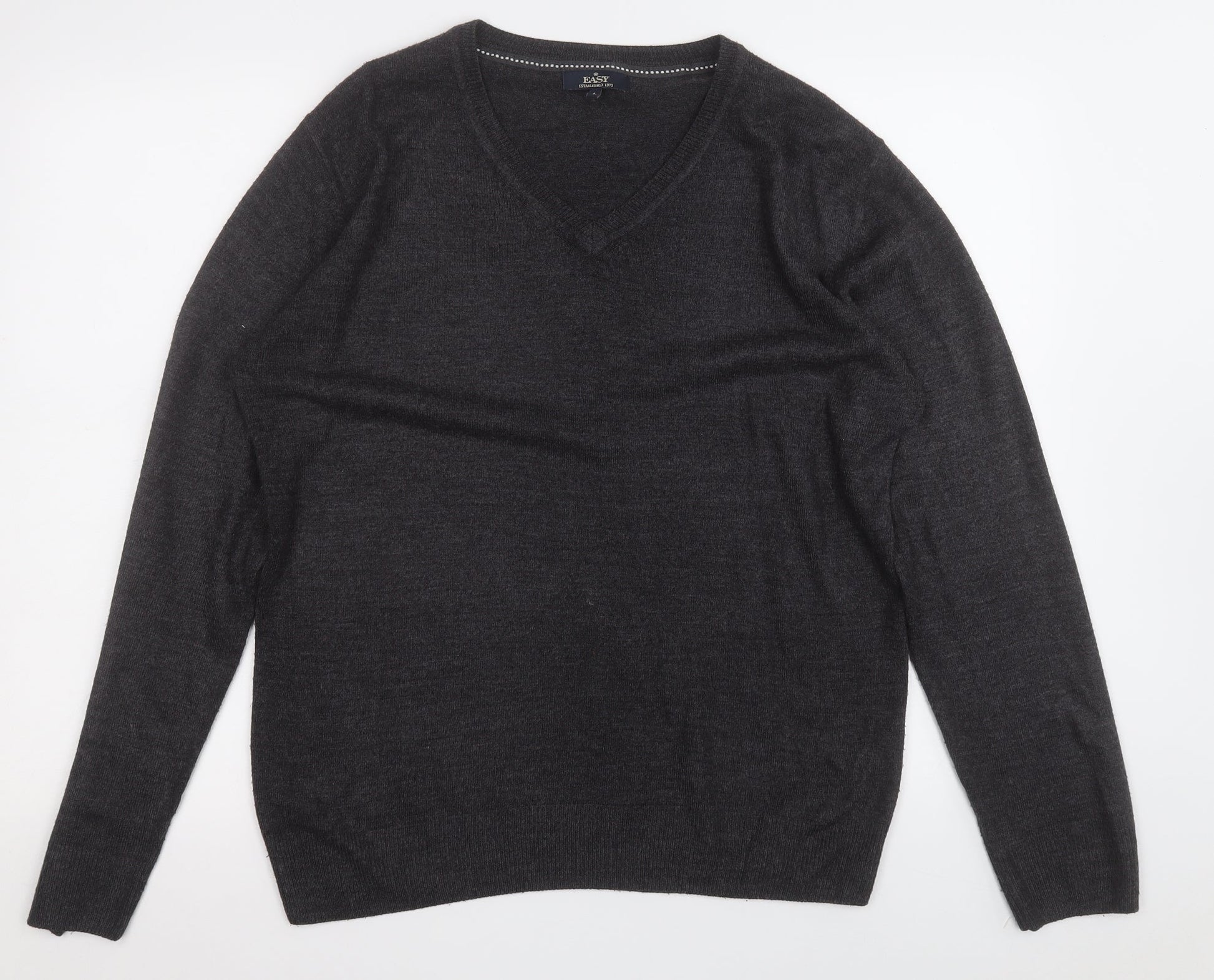 Easy Mens Grey Round Neck Acrylic Pullover Jumper Size L