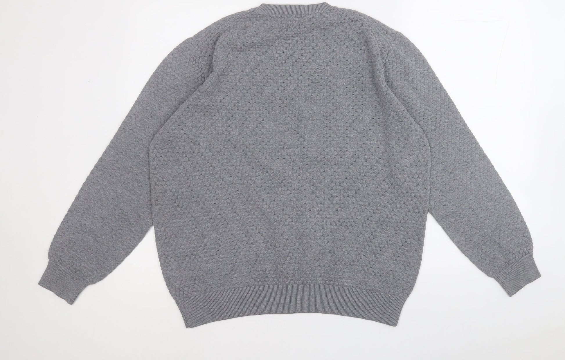 Easy Mens Grey Round Neck Acrylic Pullover Jumper Size L