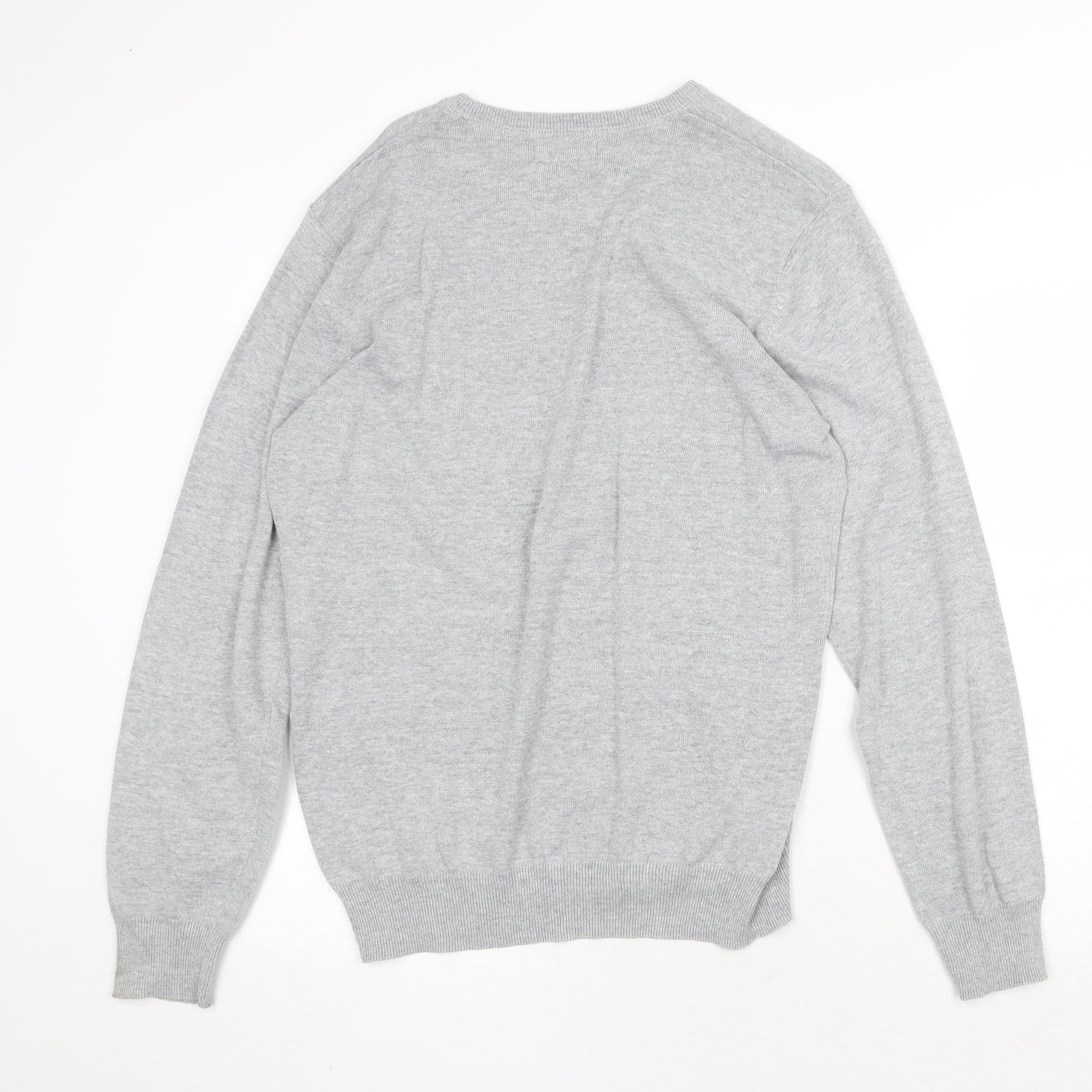 Easy Mens Grey Round Neck Cotton Pullover Jumper Size M Long Sleeve
