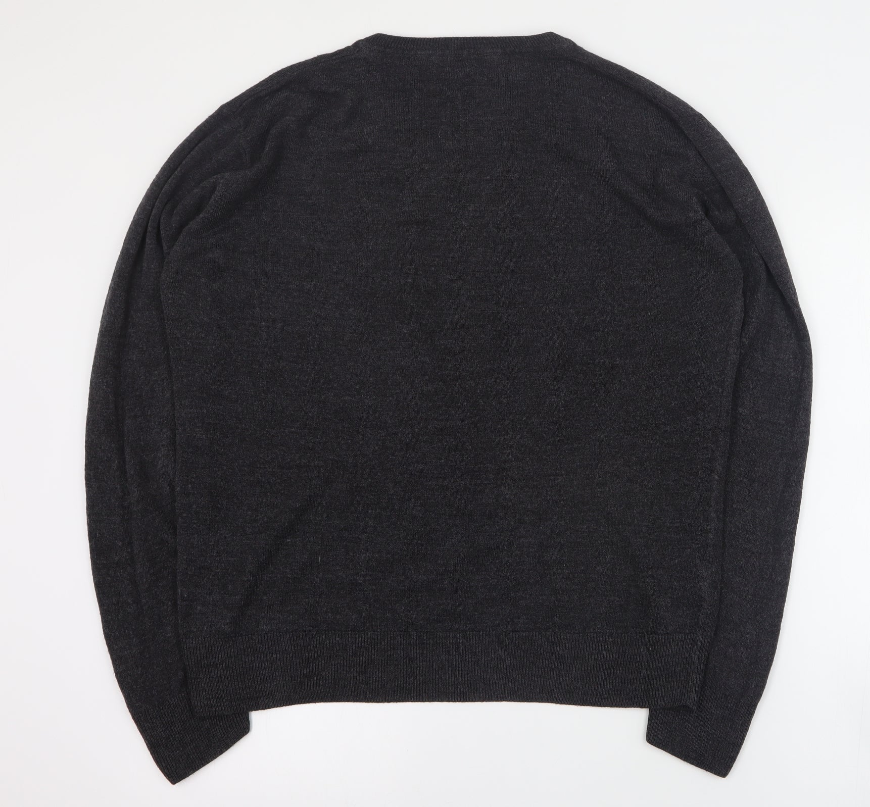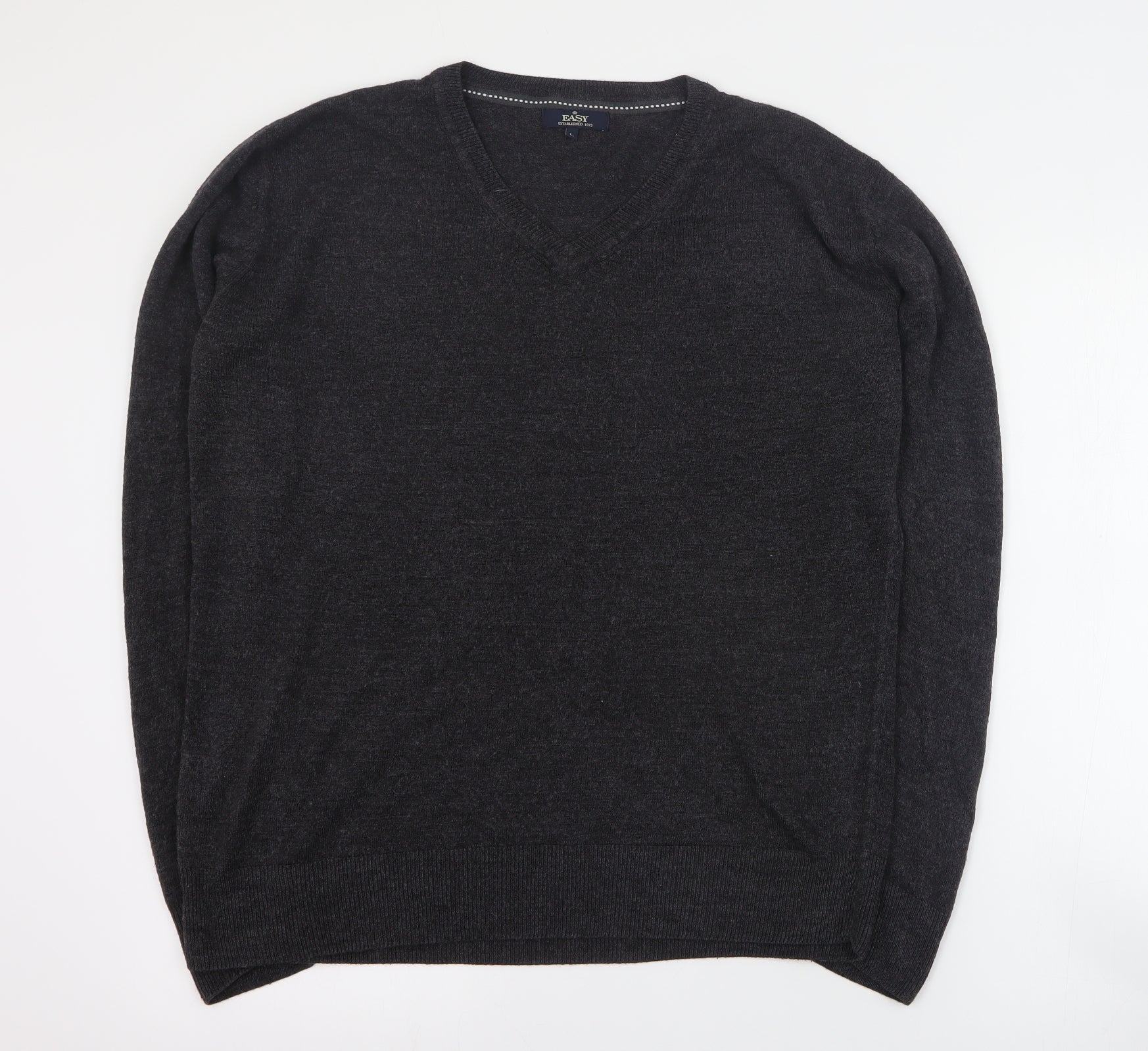 Easy Mens Grey V-Neck Acrylic Pullover Jumper Size L