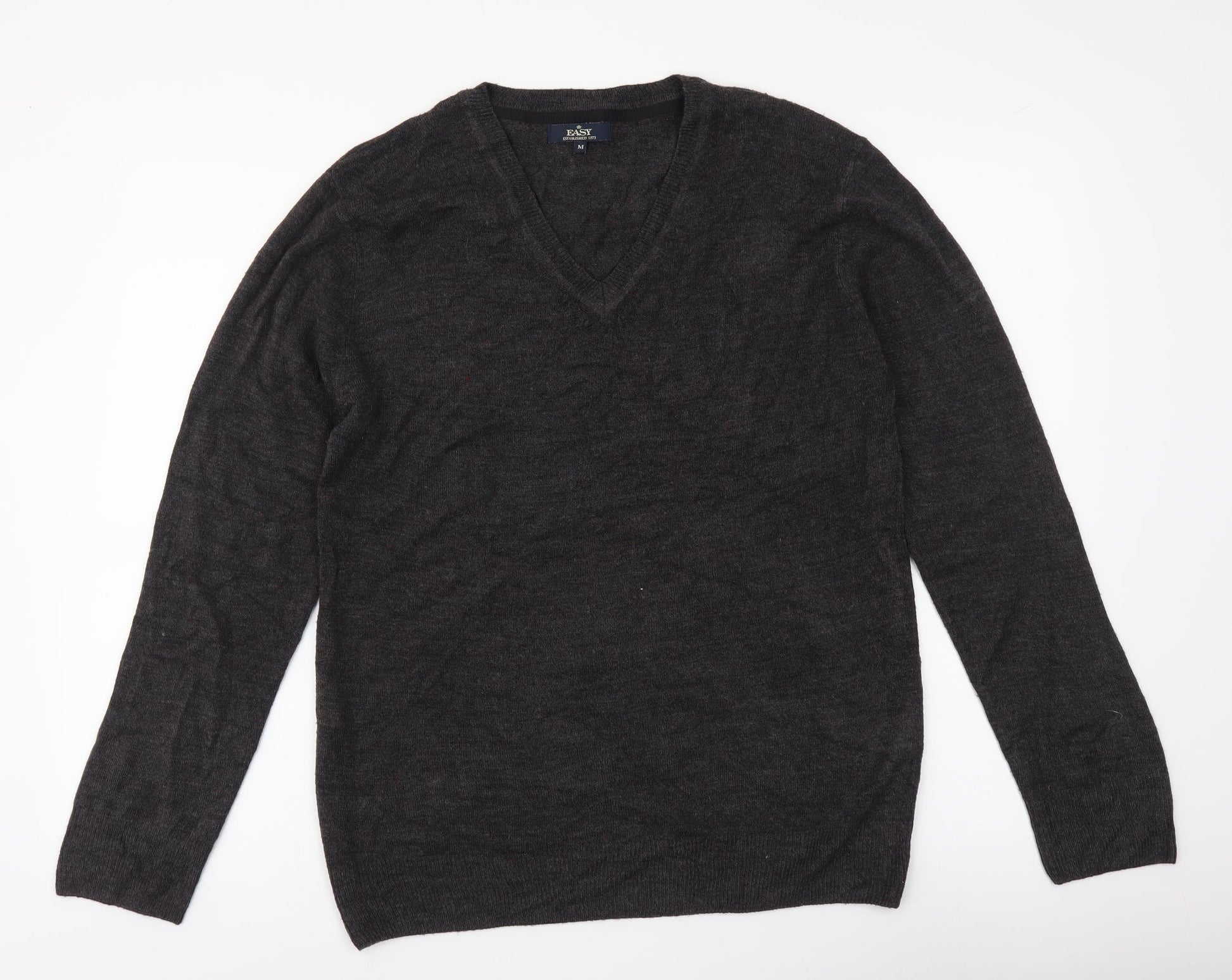 Easy Mens Grey V-Neck Acrylic Pullover Jumper Size M