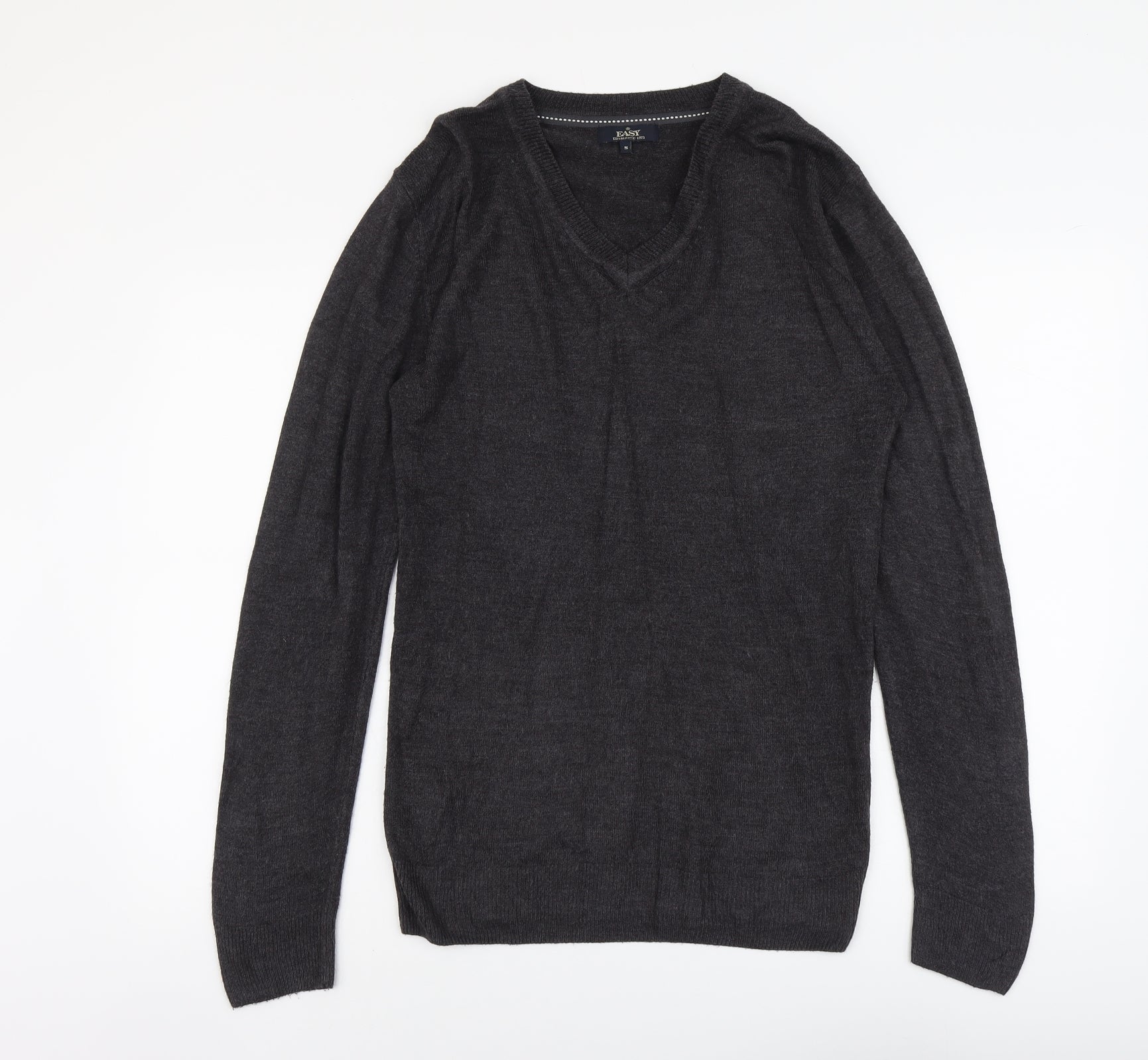 Easy Mens Grey V-Neck Acrylic Pullover Jumper Size S Long Sleeve