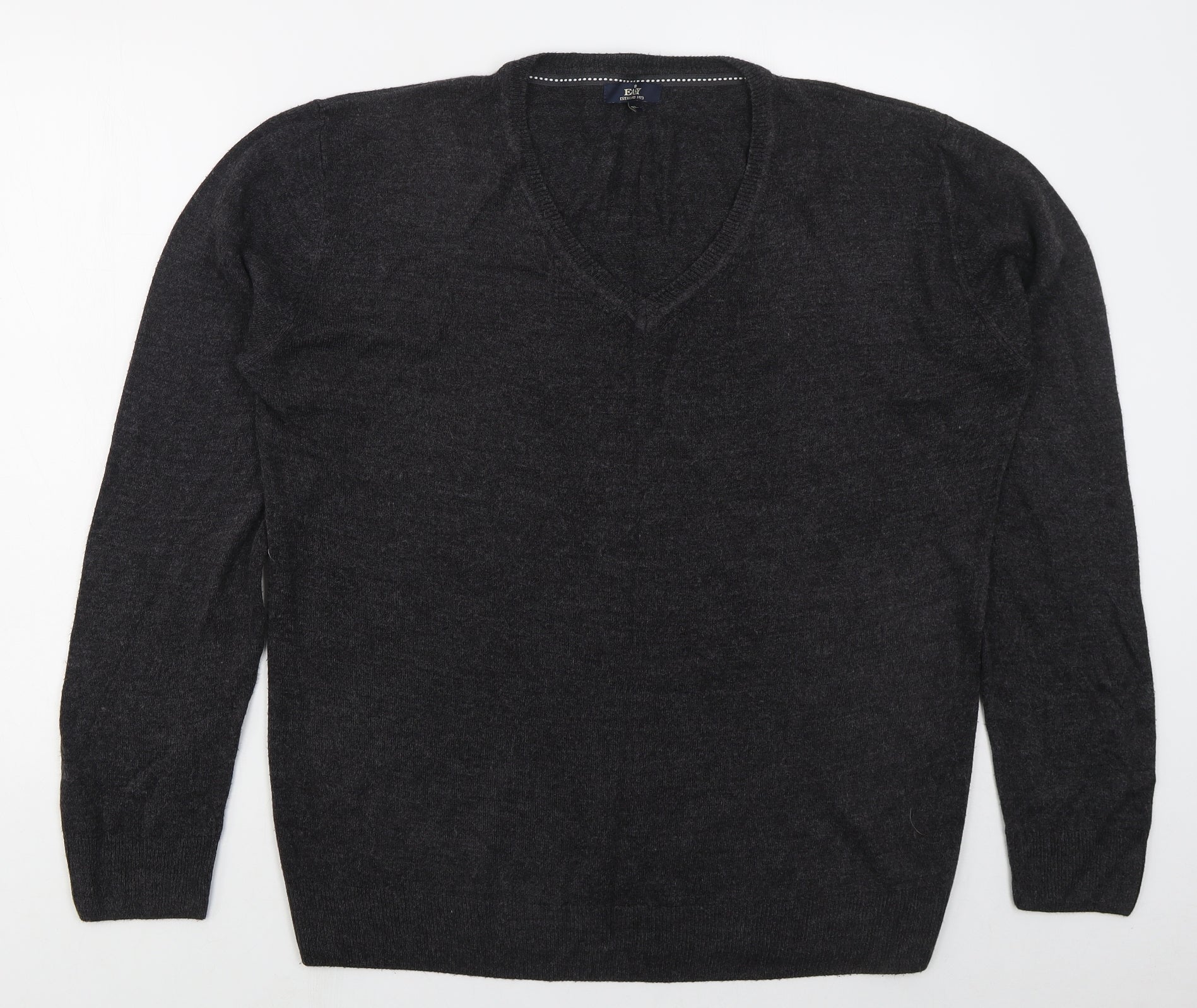 Easy Mens Grey V-Neck Acrylic Pullover Jumper Size XL