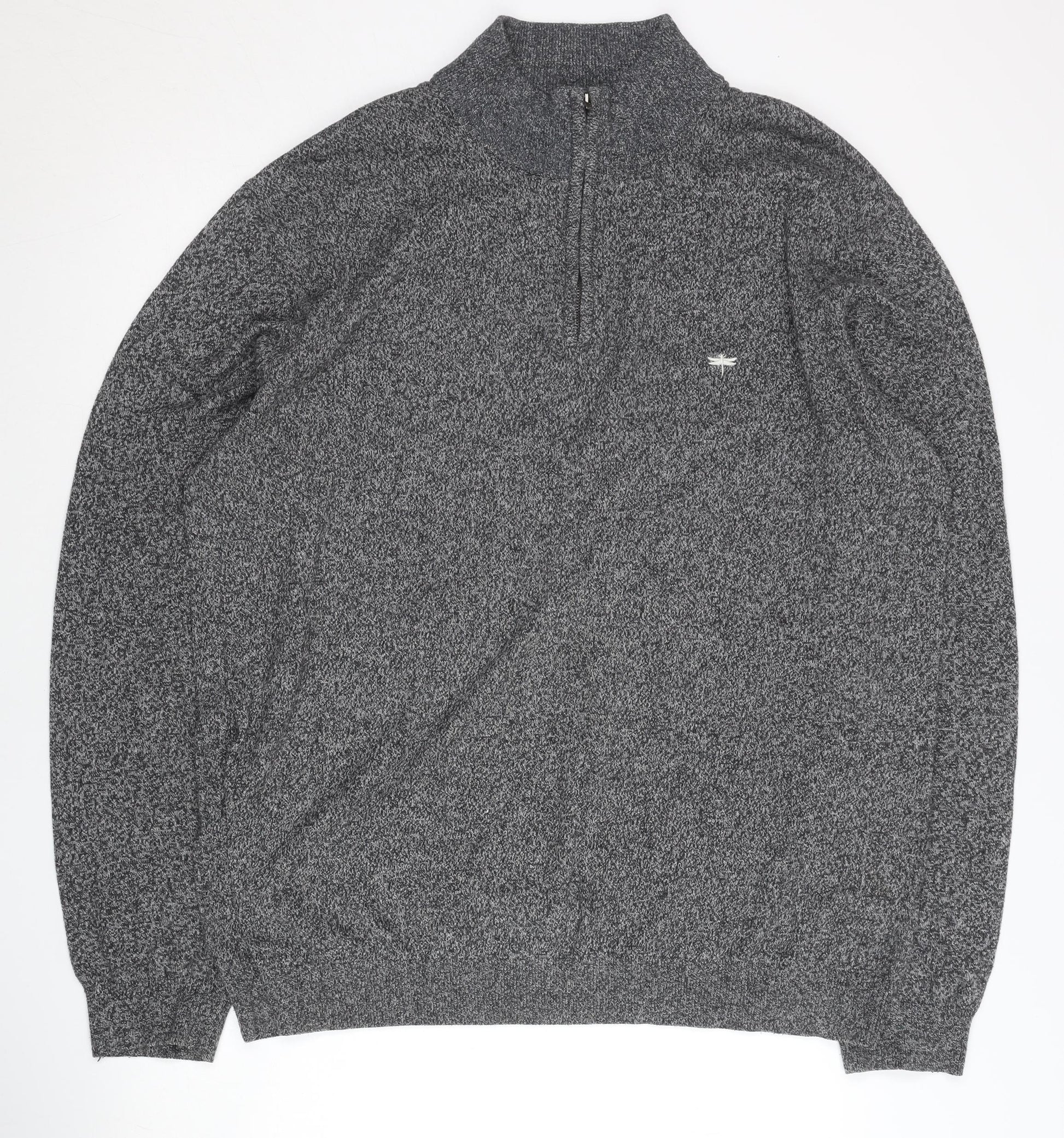 Easy Mens Grey XL 1/4 Zip Mock Neck Knit Jumper Pullover Long Sleeve