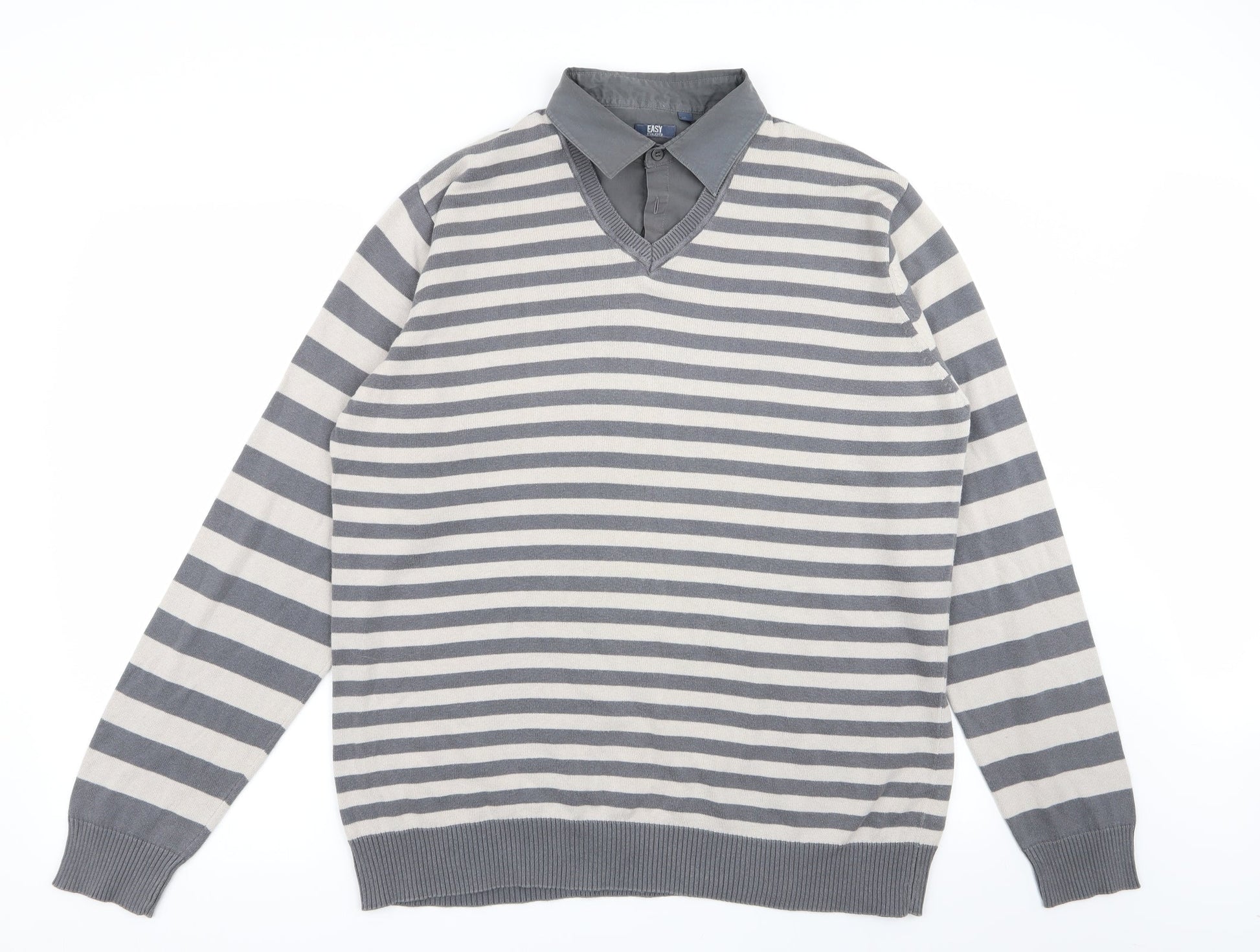 Easy Mens Multicoloured Striped Pullover Jumper Size L - shirt/jumper