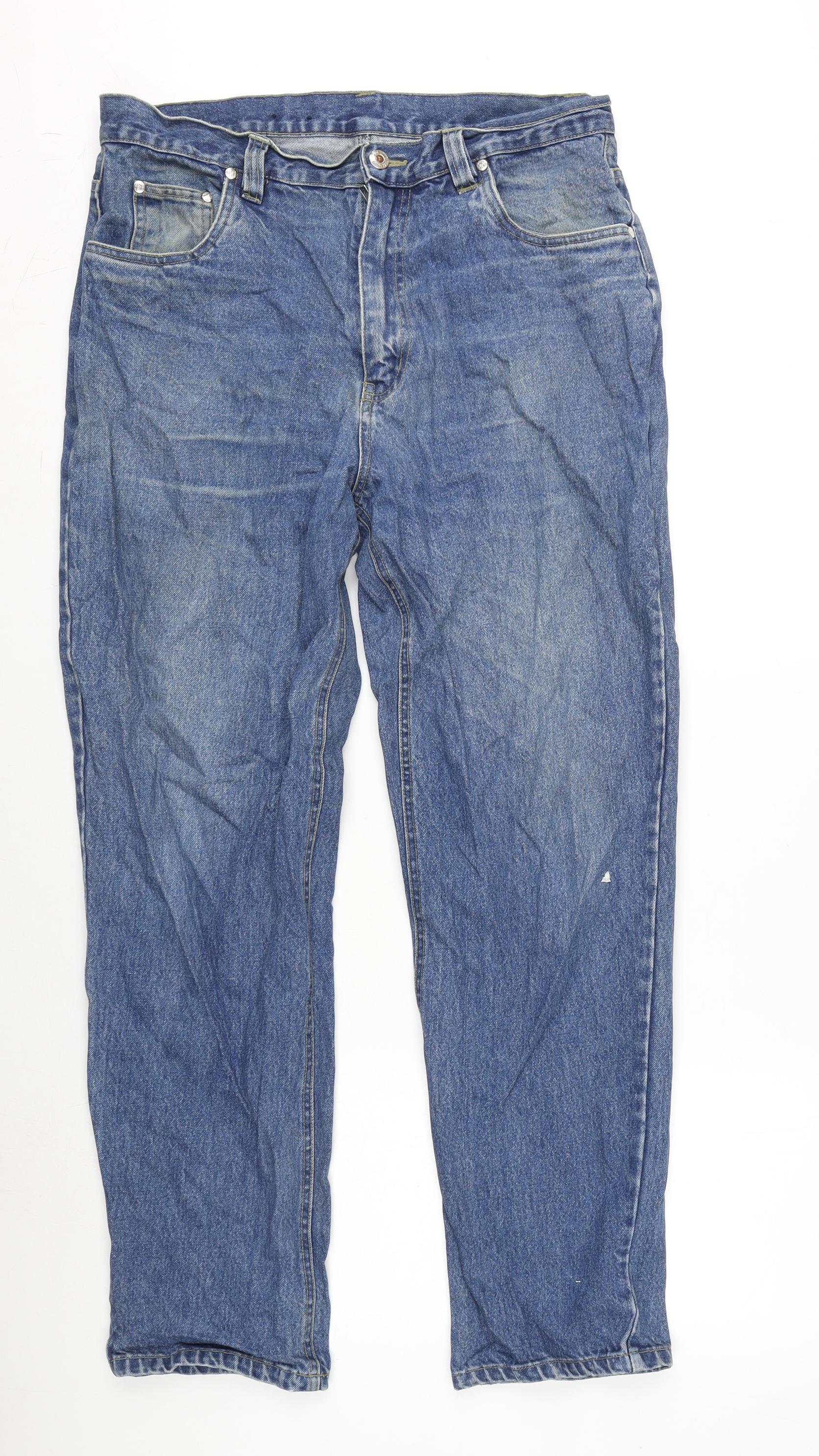 Edge Mens Blue Cotton Straight Jeans Size 34 in L30 in Regular Zip