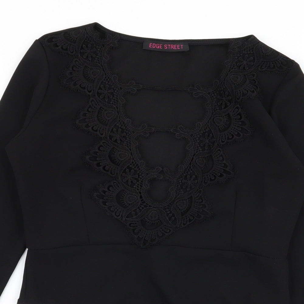Edge Street Womens Black Floral Bodysuit One-Piece Size 12
