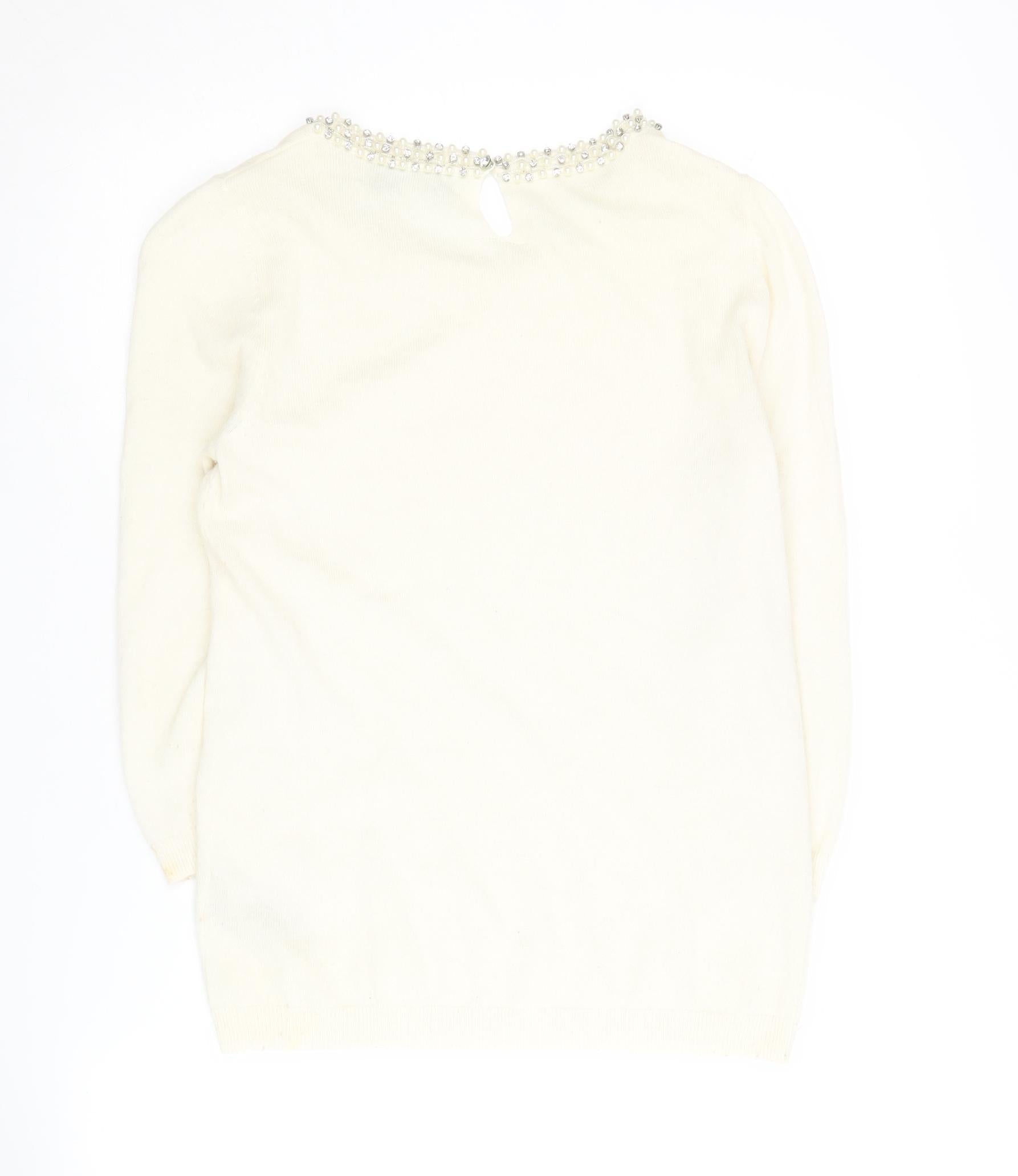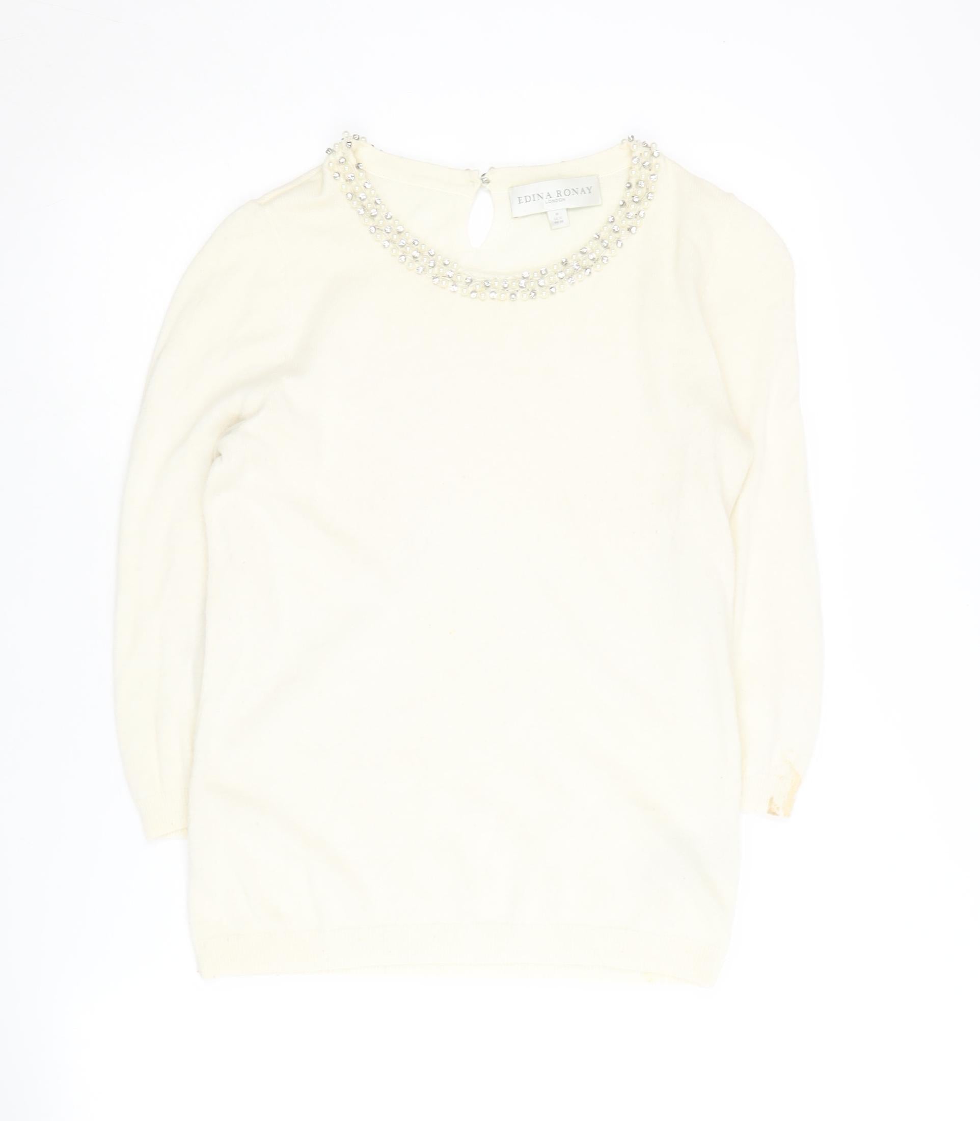 Edina Ronay Women's Ivory Beaded Knit Jumper Size M