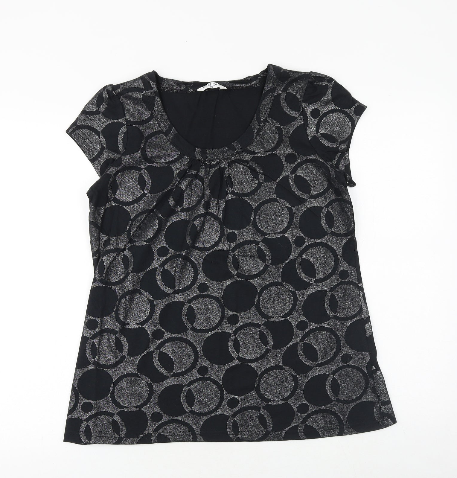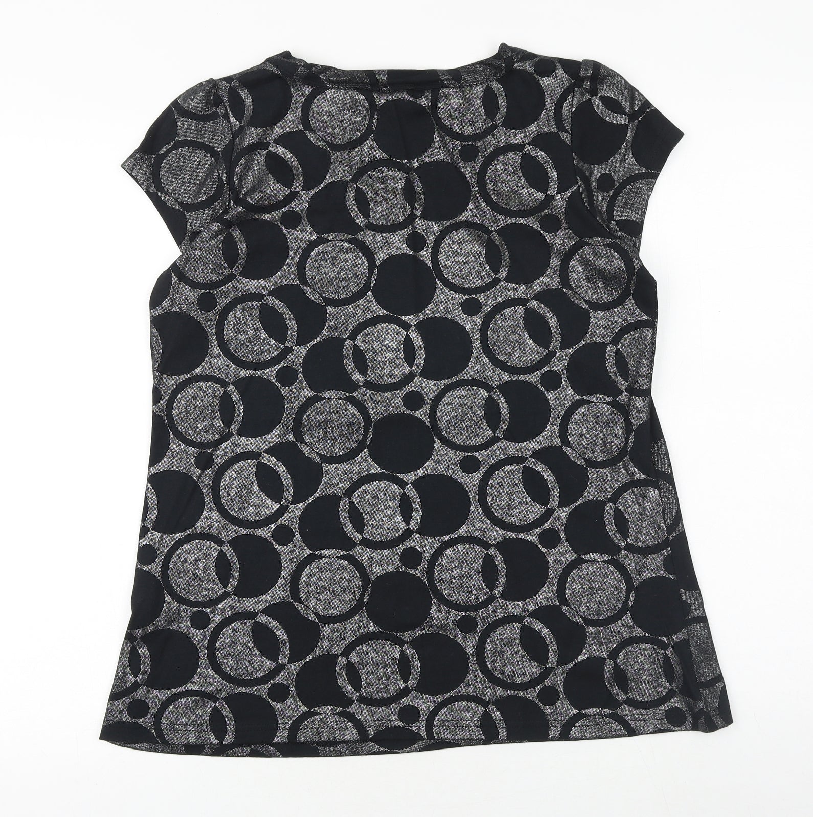 Editions Womens Black Geometric 100% Cotton Basic T-Shirt Size 10 Scoop Neck