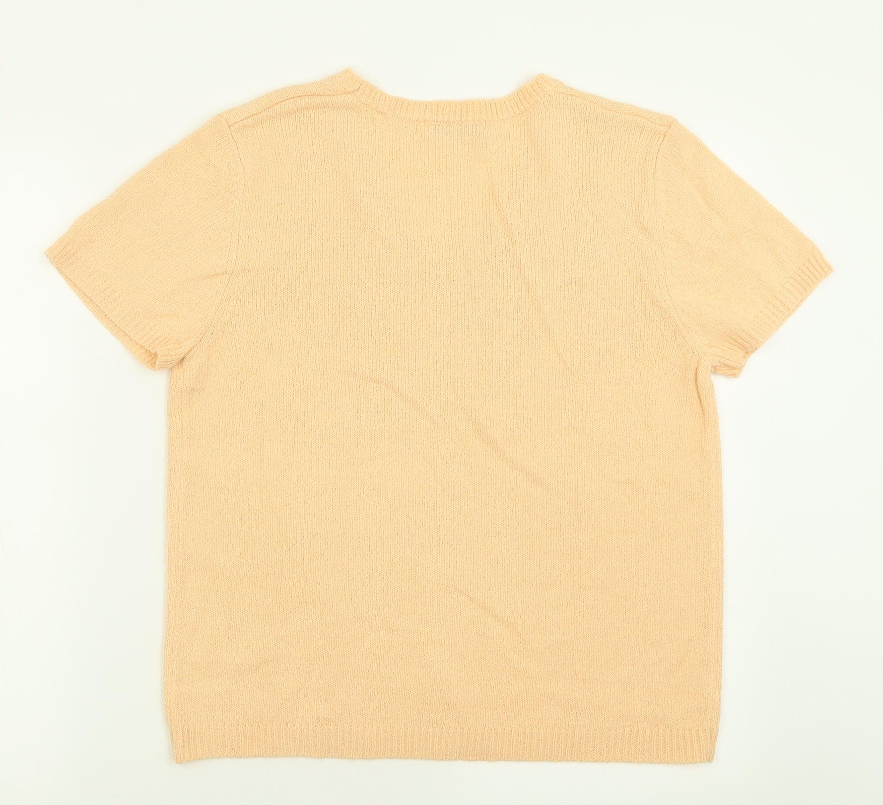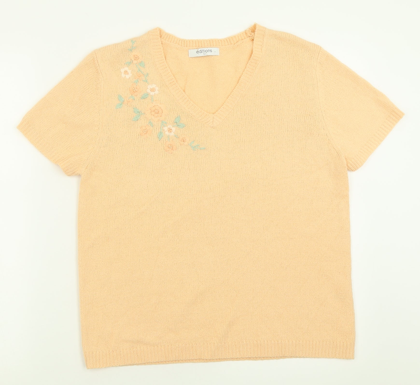 Editions Womens Orange Floral Acrylic Basic T-Shirt Size 12 V-Neck