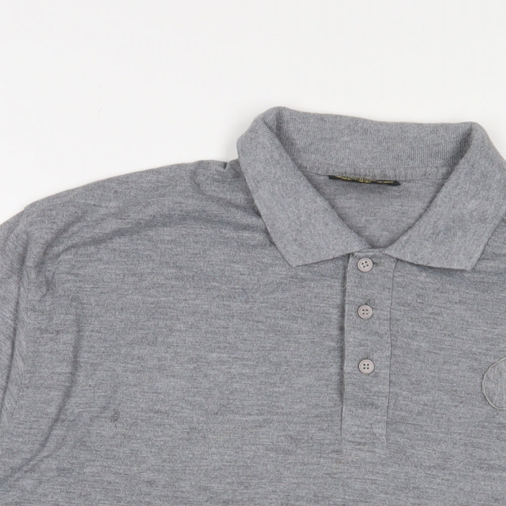 Elbow Mens Grey Polyester Polo Size XL Collared Button - Logo, Embroidered