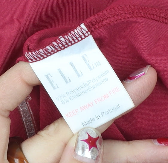 ELLE Women’s Red Logo T-Shirt Size M Short Sleeve Stretchy Top