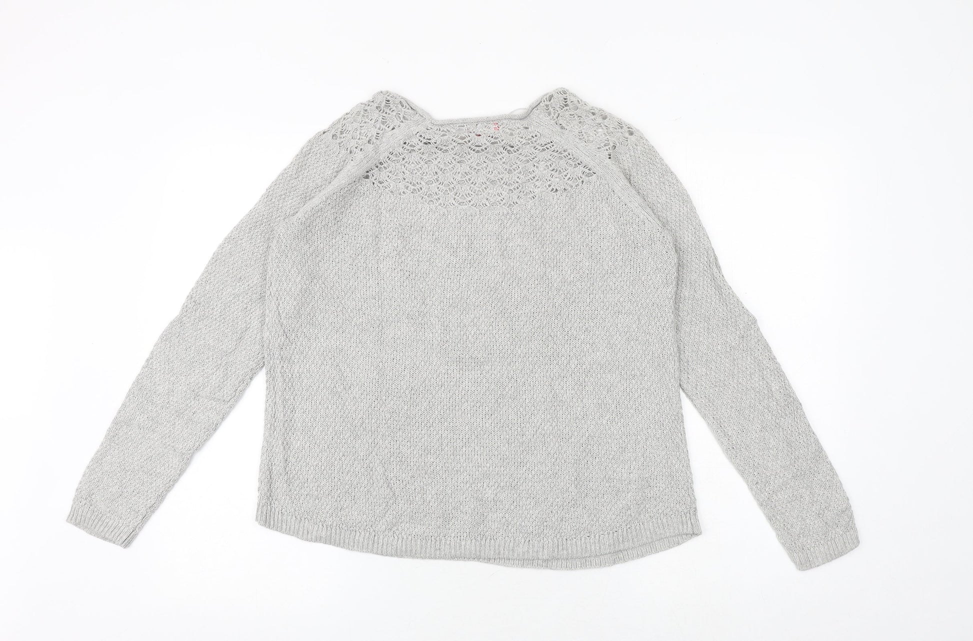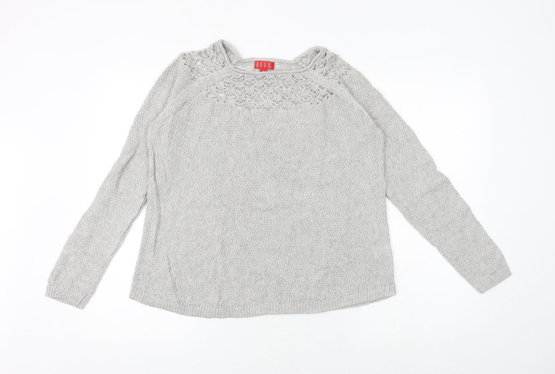 ELLE Womens Grey Round Neck Cotton Pullover Jumper Size M