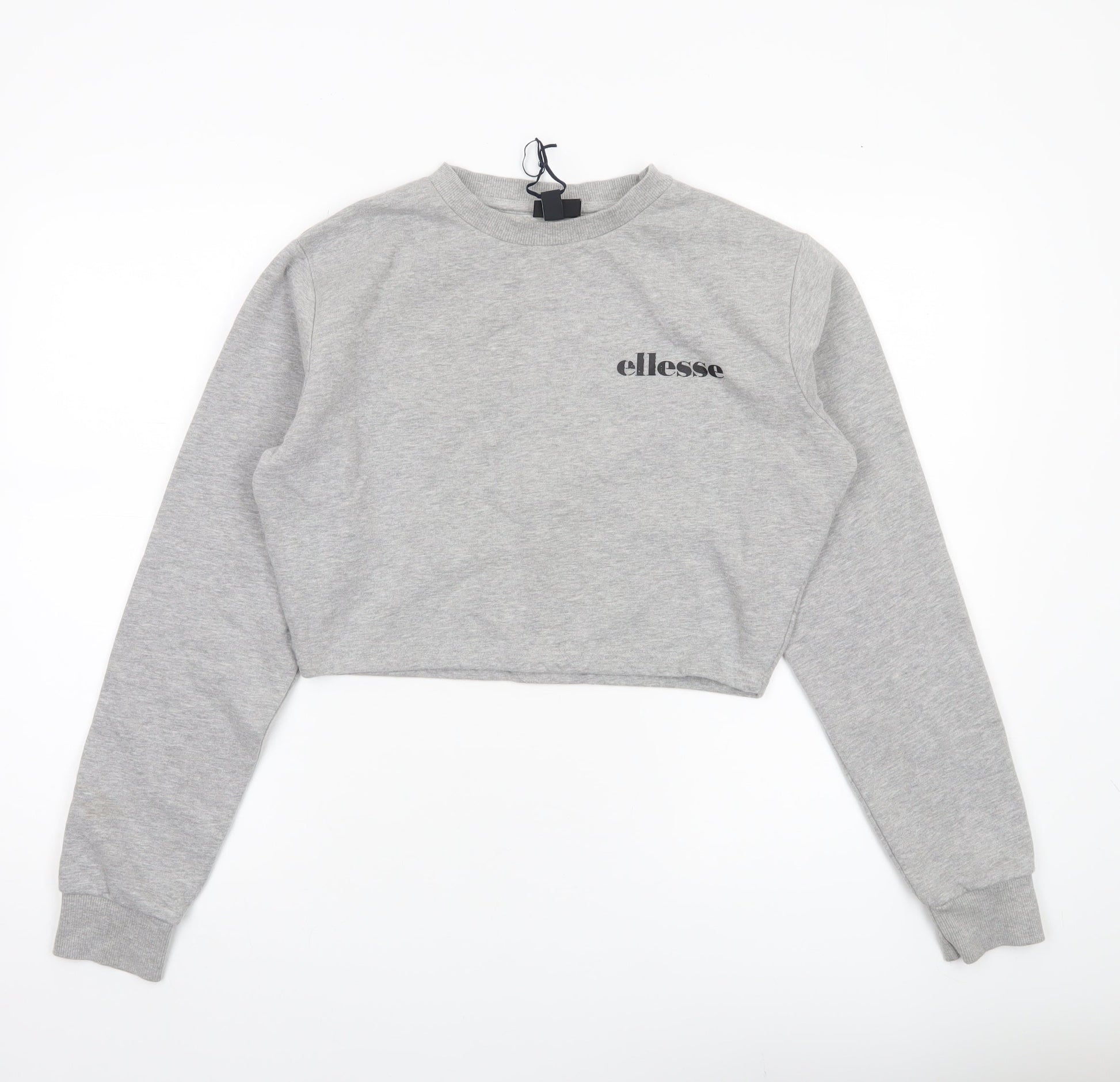 Ellesse Women’s Grey Cropped Sweatshirt UK 8 Logo Pullover