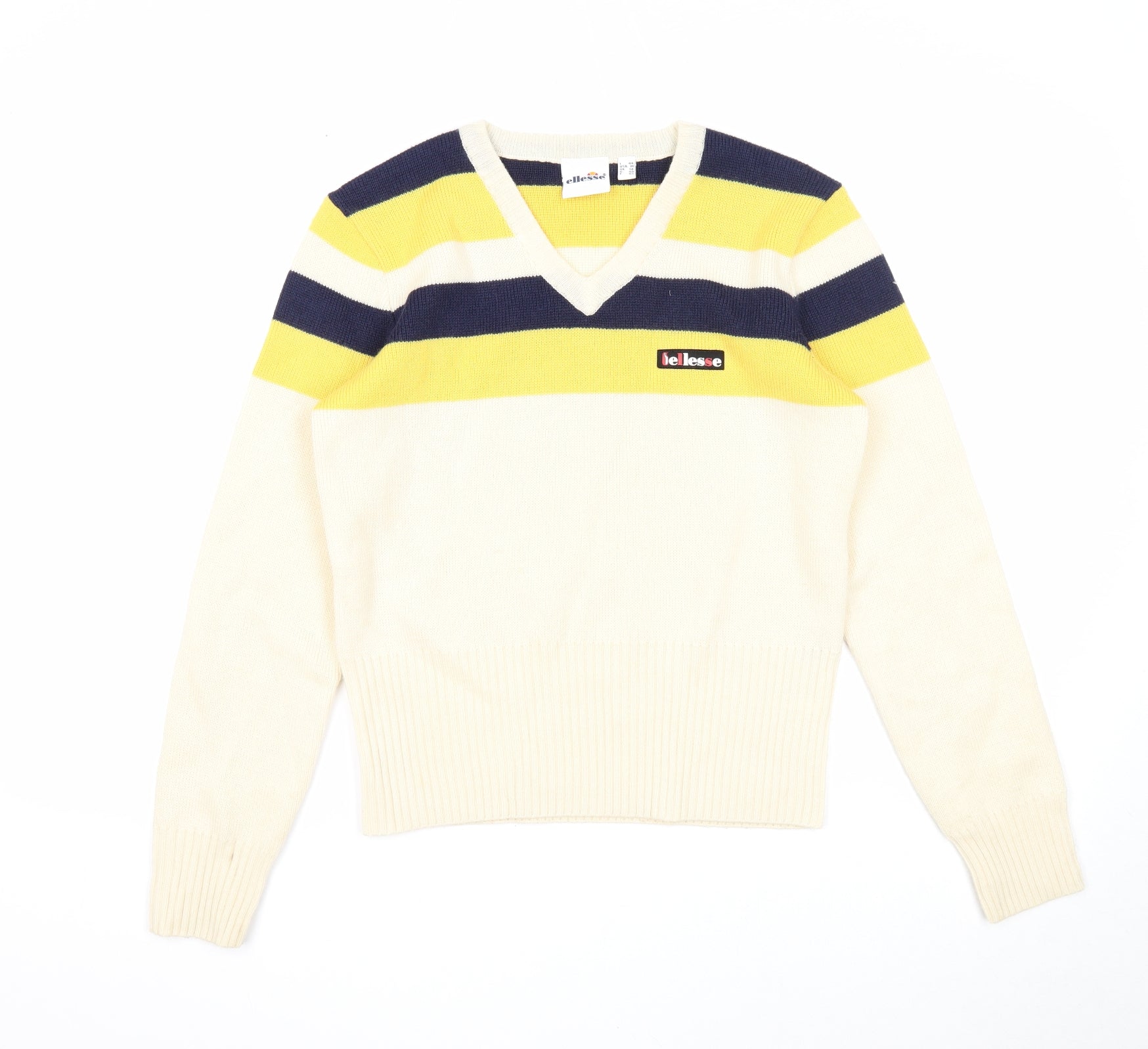 ellesse Womens Beige V-Neck Striped Viscose Pullover Jumper Size 14
