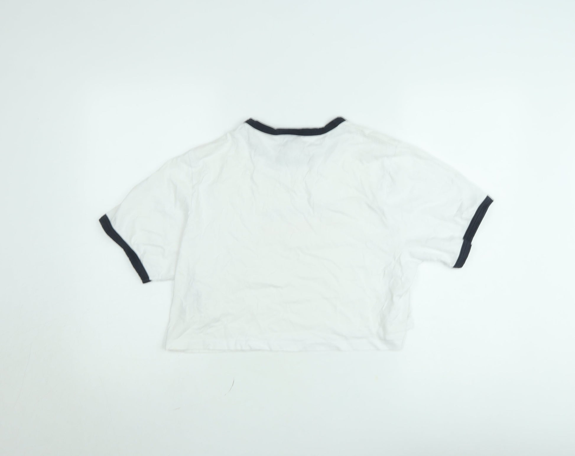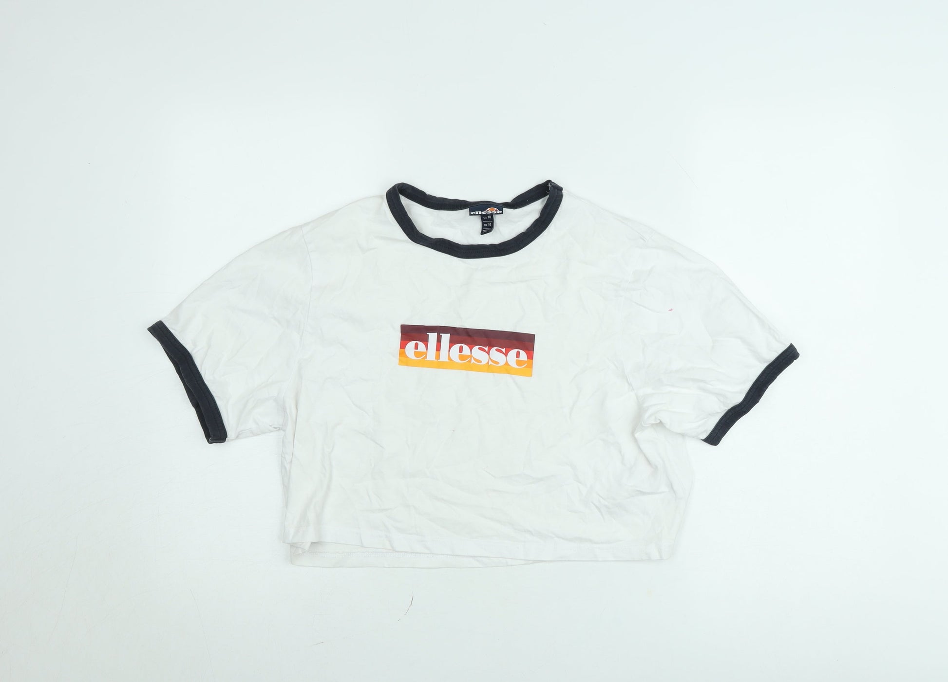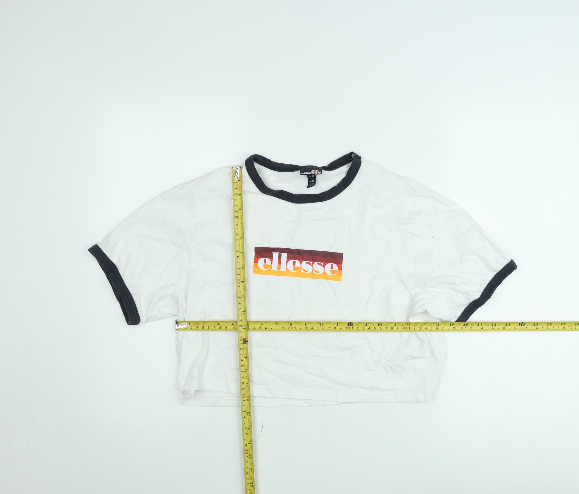 Ellesse Women's White Cropped Ringer T-Shirt UK 14 Retro Style