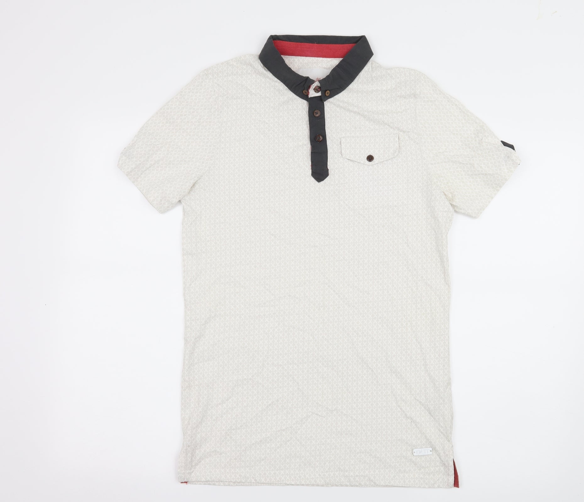 EN:TT Mens Grey Geometric Jersey Polo Size S