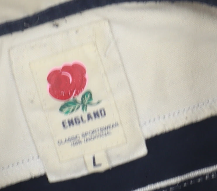 England Men's Beige Rugby Polo L Striped Long Sleeve