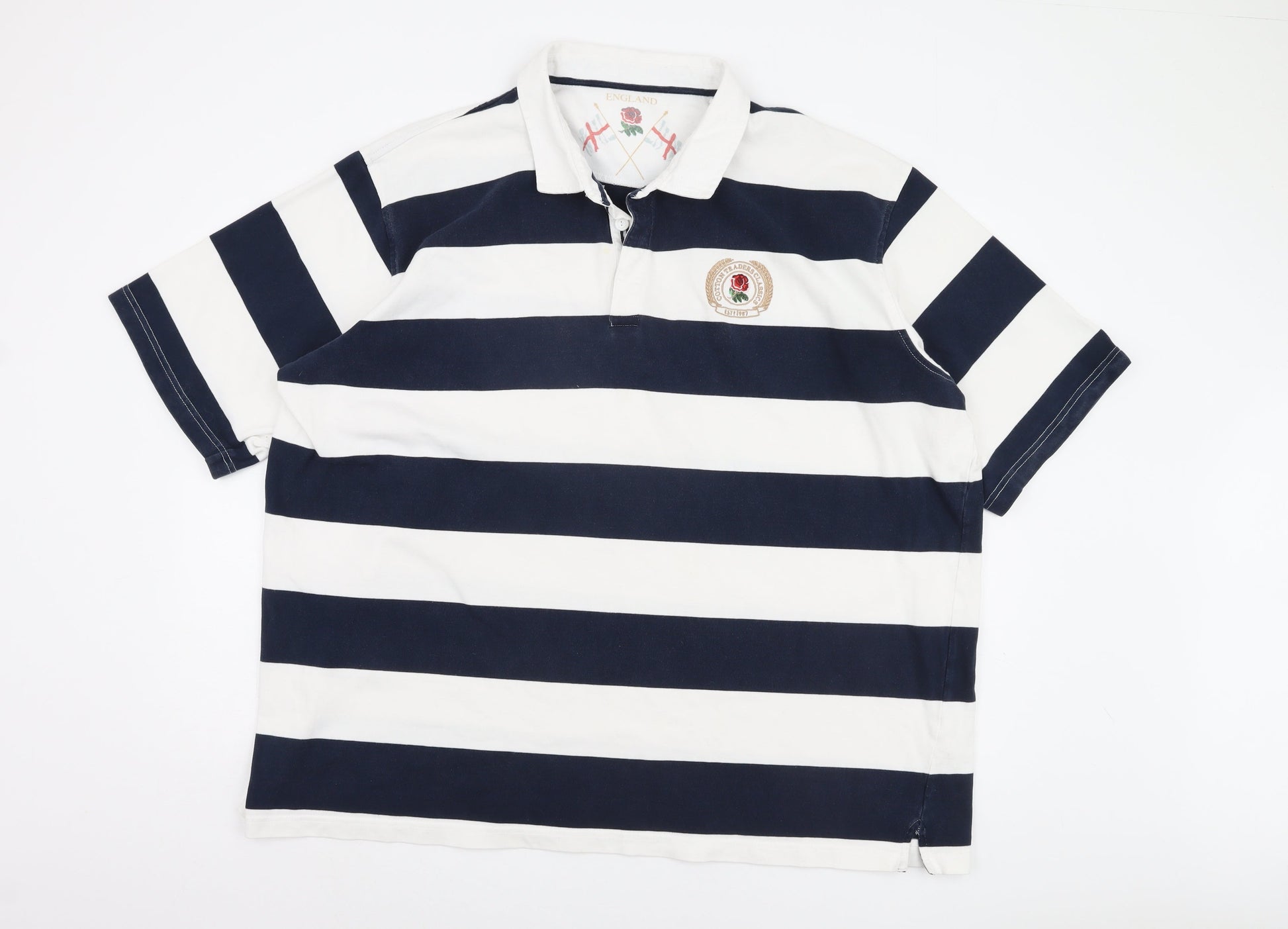 England Men's Blue Striped Polo, 4XL, Short Sleeve