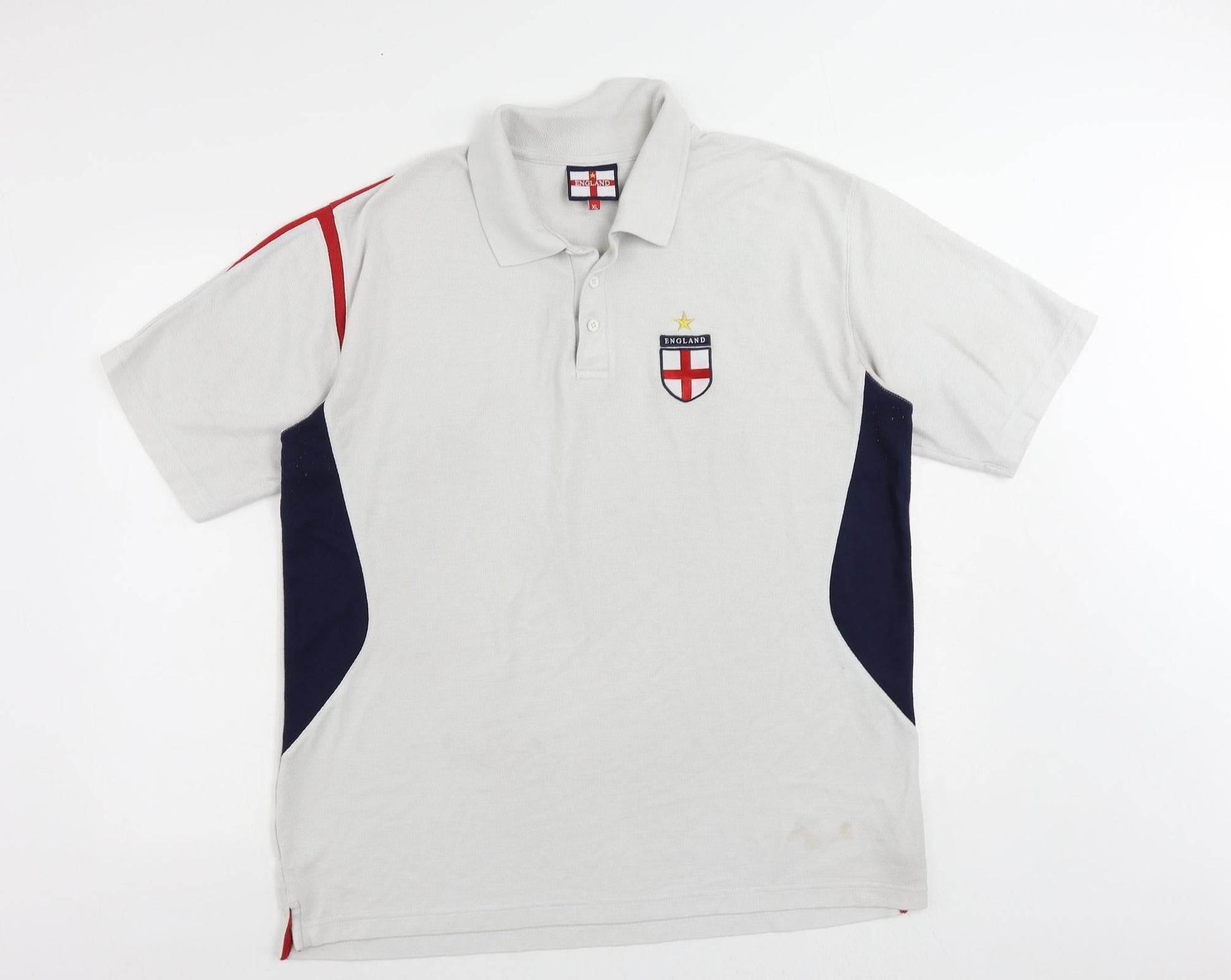 England Mens Grey Polyester Polo Size XL Collared Button - Vintage
