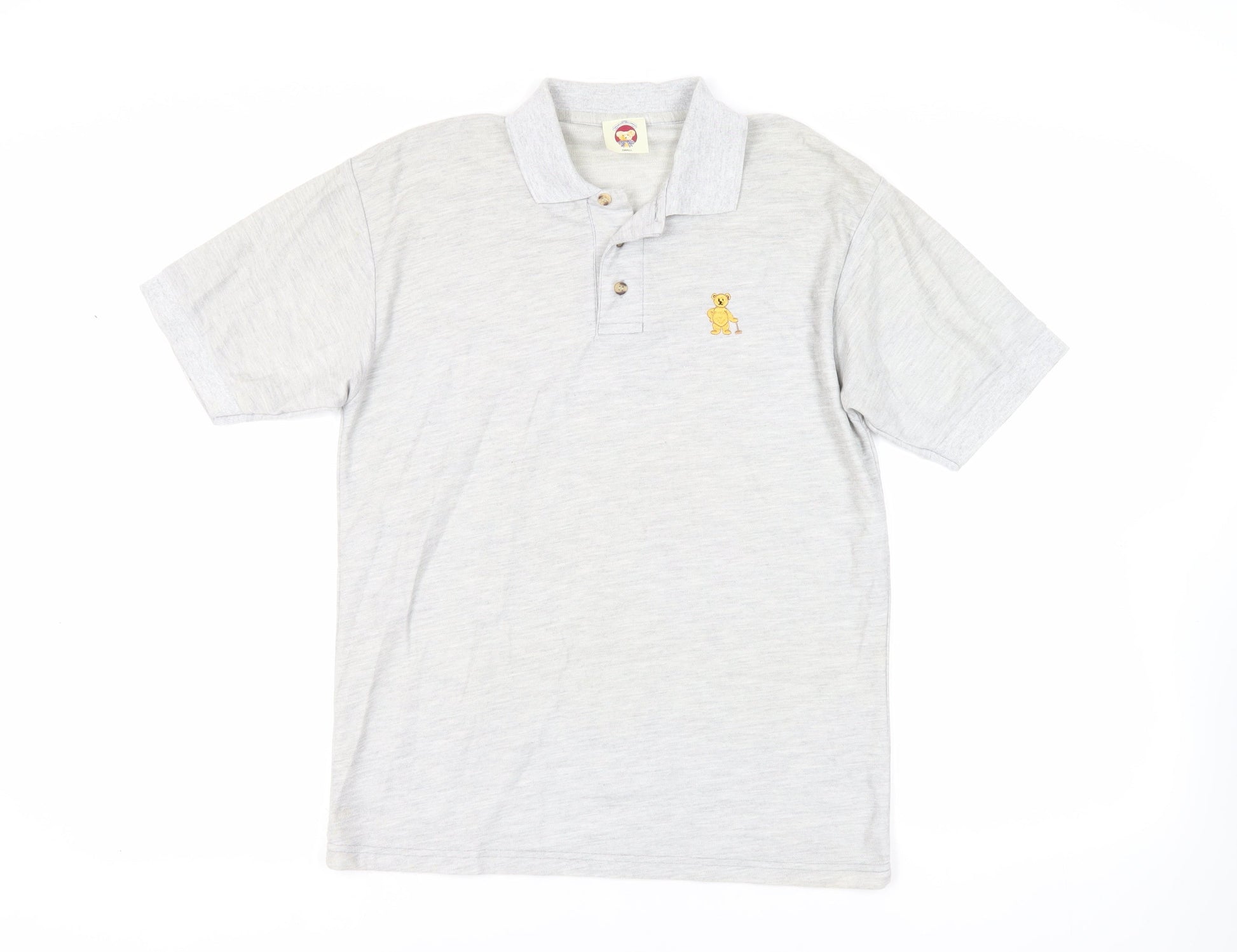 English Teddy Bear Company Mens Grey Polyester Polo Size S Collared Button - Logo